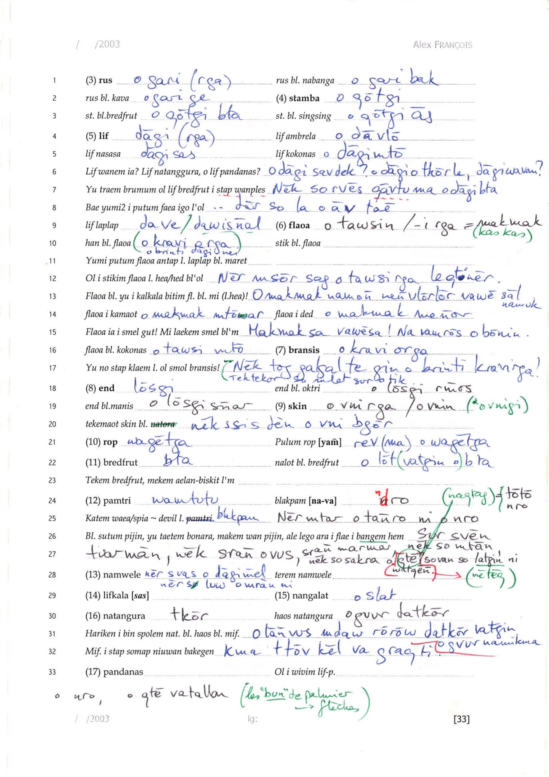 Archives de chercheurs: Alexandre François, Carnets de terrain / Field notes - Vanuatu [