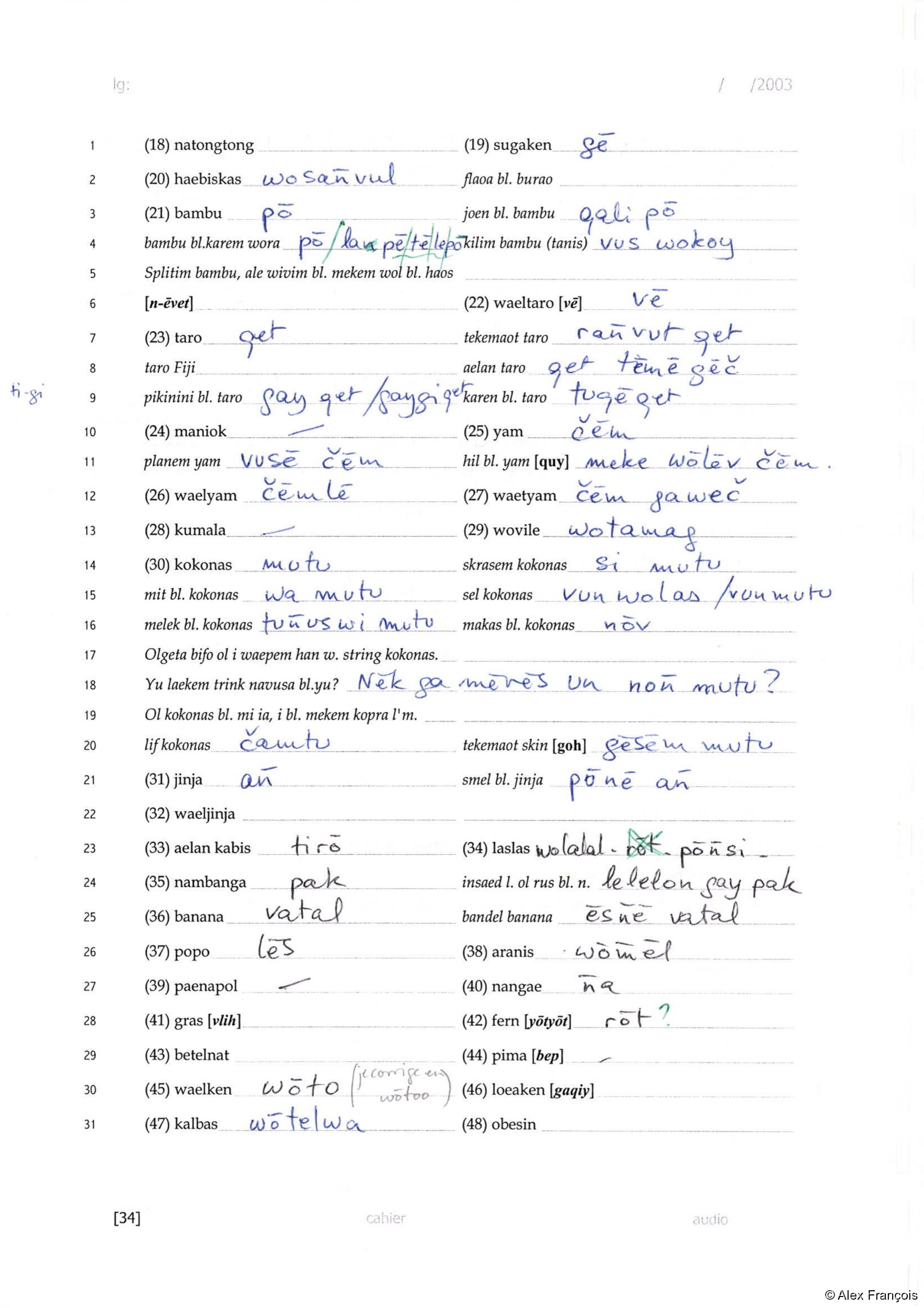 Archives de chercheurs: Alexandre François, Carnets de terrain / Field notes - Vanuatu [