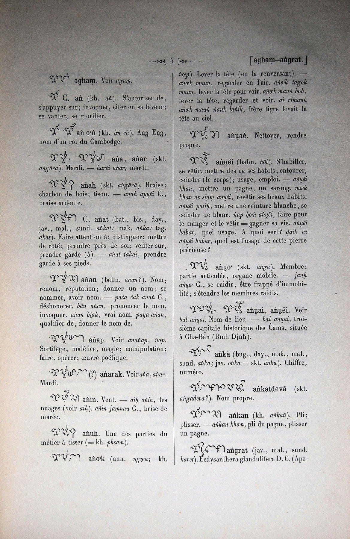 Quote this document Cabaton, Antoine; Aymonier, Etienne 1906 [accessed: 2026/2/5]. "lettre A: lettre Añ" (Object Id: 10710). In Dictionnaire Cam-Français, E. Aymonier et A. Cabaton. ODSAS: https://www.odsas.net/object/10710.