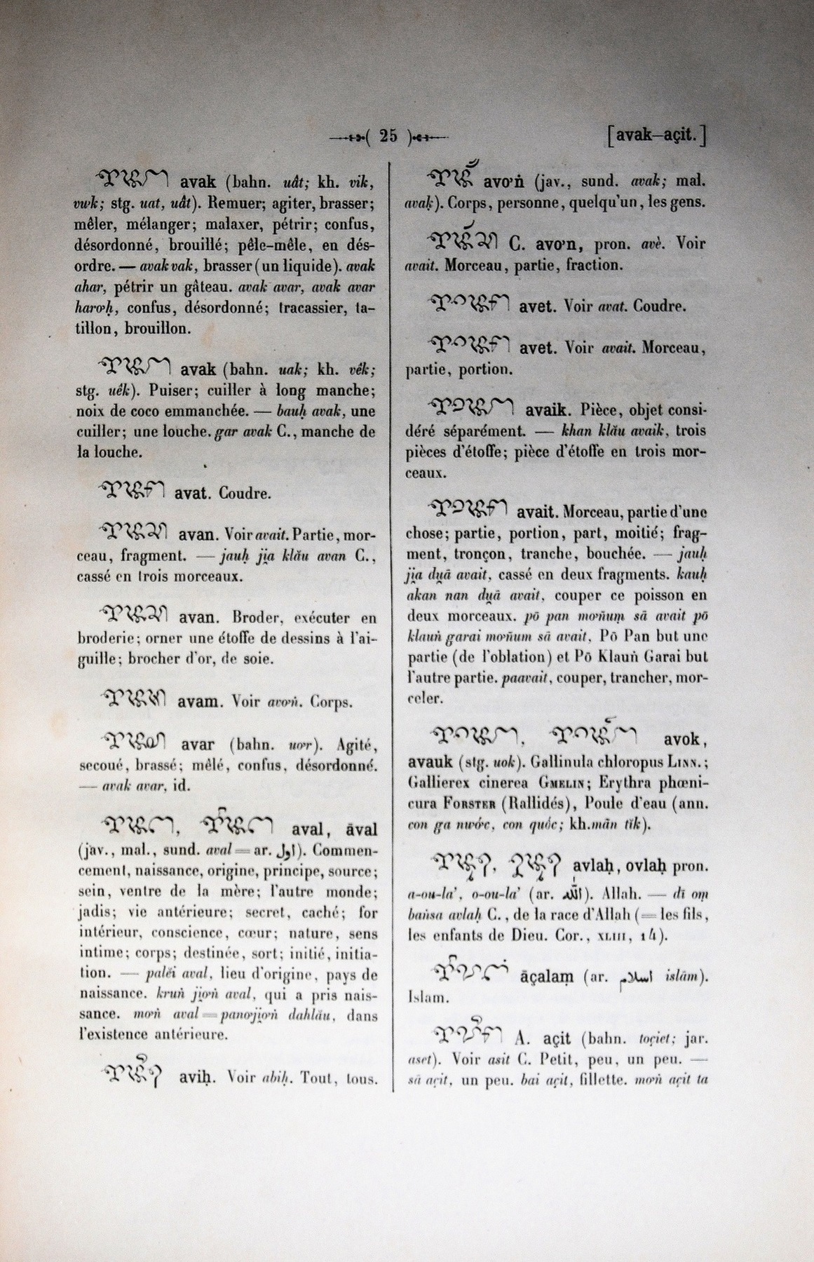 Quote this document Cabaton, Antoine; Aymonier, Etienne 1906 [accessed: 2026/2/5]. "lettre A: lettre Aç" (Object Id: 10730). In Dictionnaire Cam-Français, E. Aymonier et A. Cabaton. ODSAS: https://www.odsas.net/object/10730.