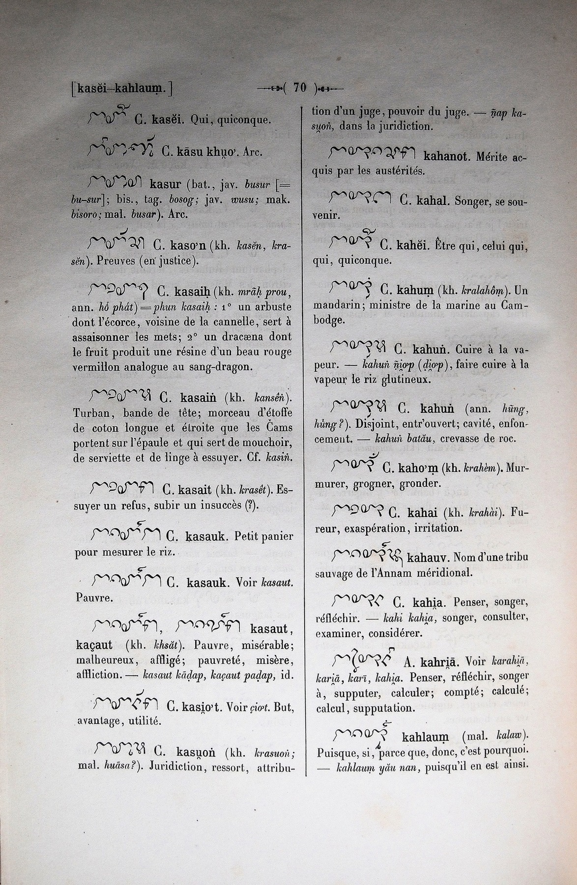 Quote this document Cabaton, Antoine; Aymonier, Etienne 1906 [accessed: 2026/2/5]. "lettre ka: lettre kah" (Object Id: 10775). In Dictionnaire Cam-Français, E. Aymonier et A. Cabaton. ODSAS: https://www.odsas.net/object/10775.