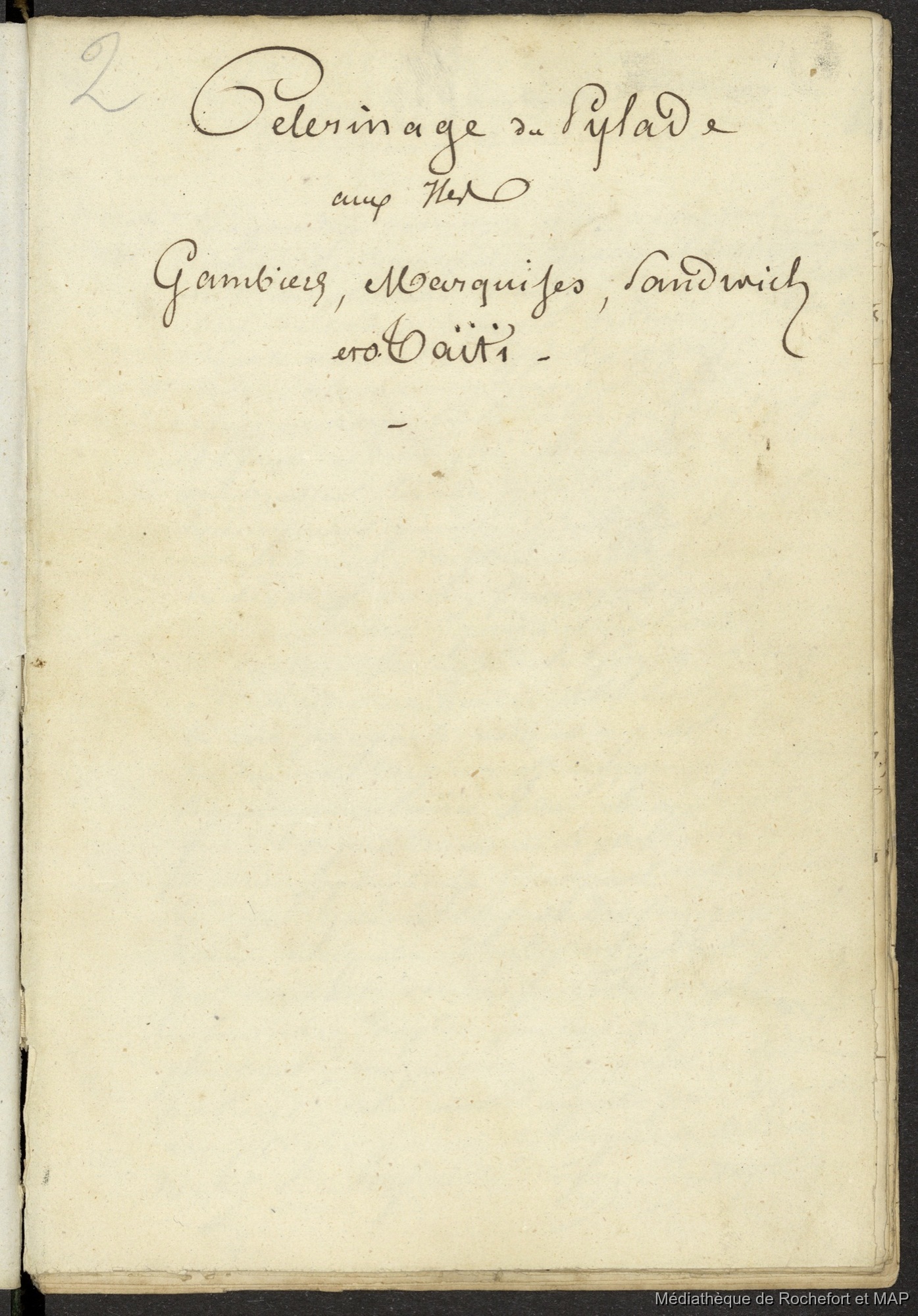 Lesson, Pierre-Adolphe 1840 [accessed: 2026/2/7]. "Pélerinage du Pylade aux îles Gambier, Marquises, Sandwich et O'Tahiti (B172996201_BM08132-2)" (Object Id: 107784). In