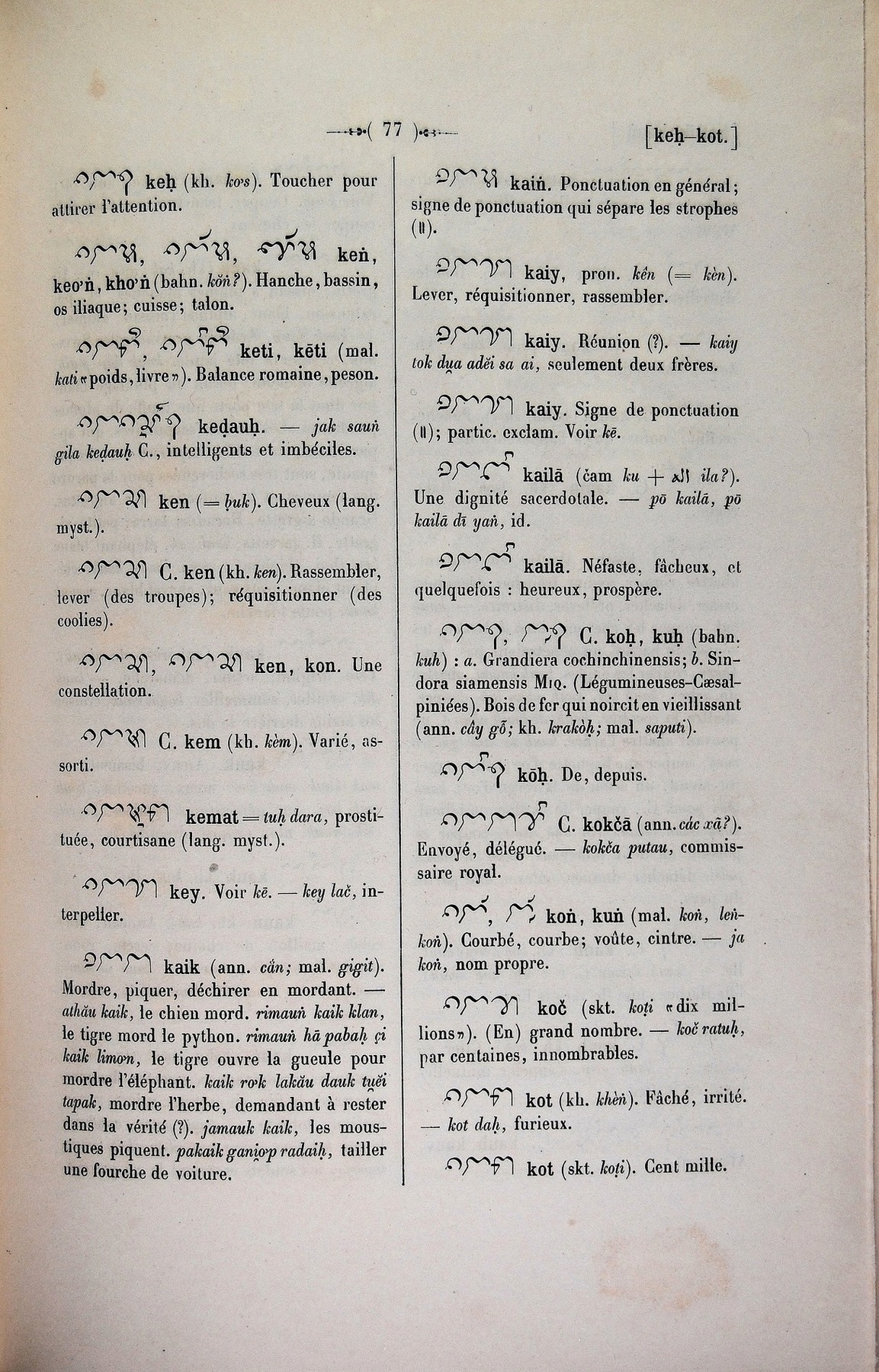 Quote this document Cabaton, Antoine; Aymonier, Etienne 1906 [accessed: 2026/2/5]. "kot" (Object Id: 10782). In Dictionnaire Cam-Français, E. Aymonier et A. Cabaton. ODSAS: https://www.odsas.net/object/10782.