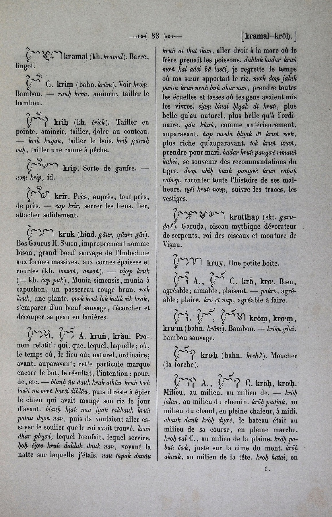Quote this document Cabaton, Antoine; Aymonier, Etienne 1906 [accessed: 2026/2/5]. "krö" (Object Id: 10788). In Dictionnaire Cam-Français, E. Aymonier et A. Cabaton. ODSAS: https://www.odsas.net/object/10788.