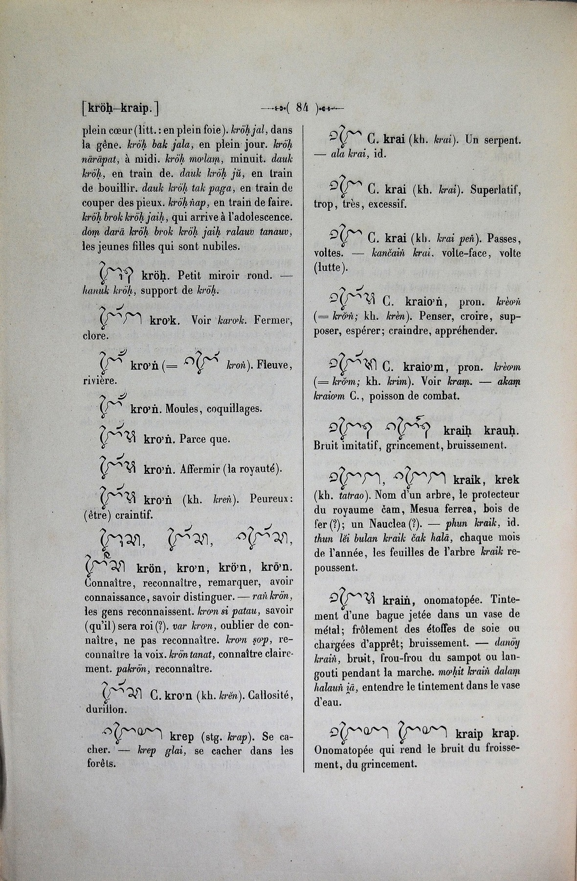 Quote this document Cabaton, Antoine; Aymonier, Etienne 1906 [accessed: 2026/2/5]. "krai" (Object Id: 10789). In Dictionnaire Cam-Français, E. Aymonier et A. Cabaton. ODSAS: https://www.odsas.net/object/10789.