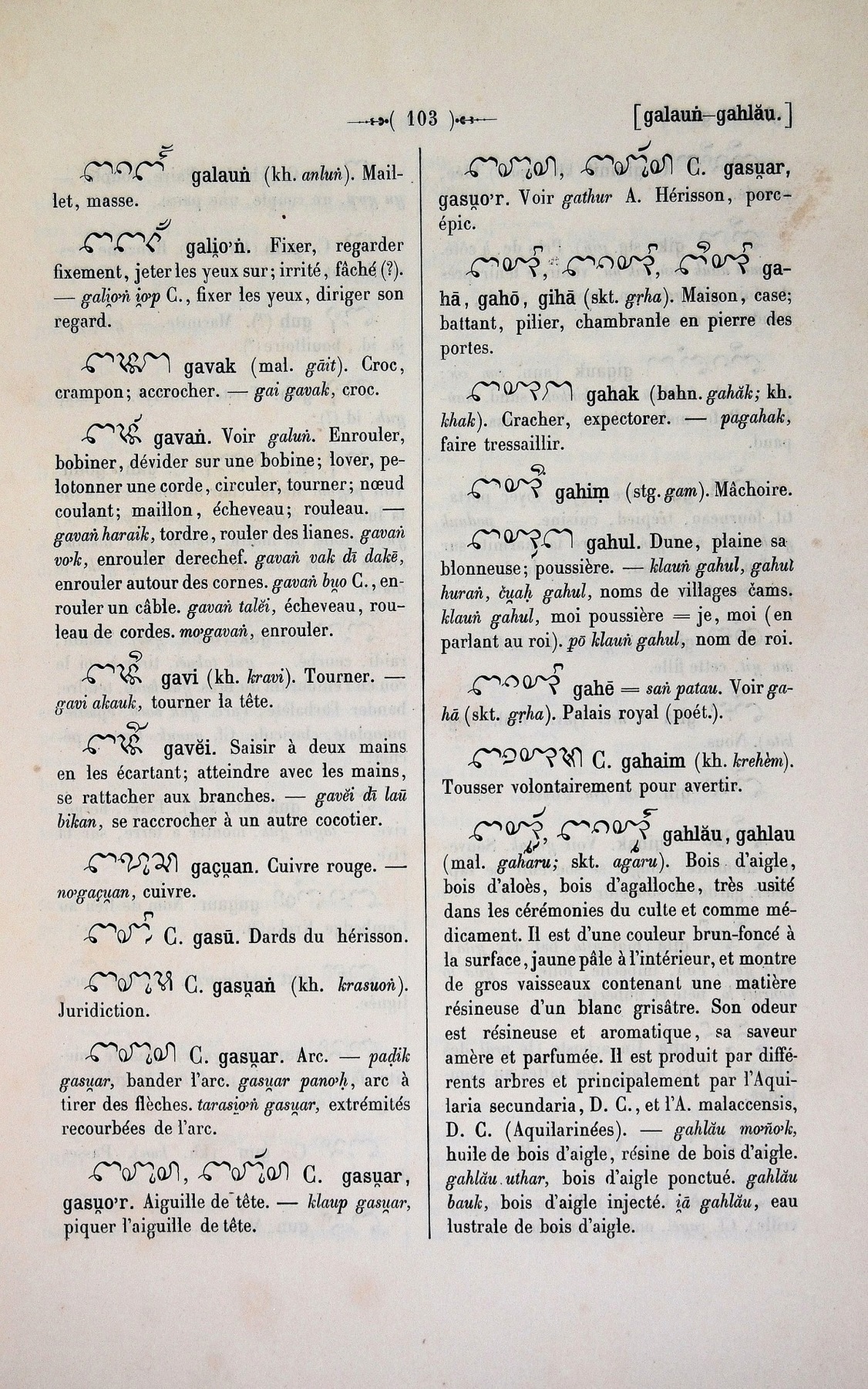 Dictionnaire Cam-Français, E. Aymonier et A. Cabaton / Ga; gah / Cabaton, Antoine; Aymonier, Etienne /  Viet Nam/ Viet Nam