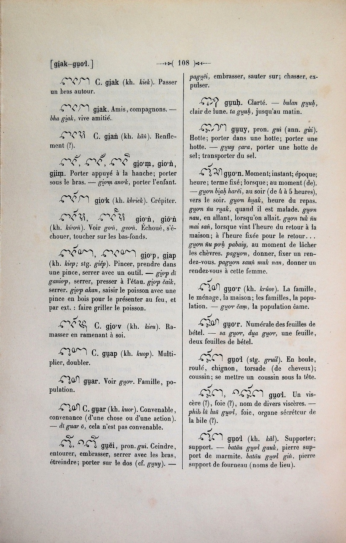 Quote this document Cabaton, Antoine; Aymonier, Etienne 1906 [accessed: 2026/2/5]. "gu<o" (Object Id: 10813). In Dictionnaire Cam-Français, E. Aymonier et A. Cabaton. ODSAS: https://www.odsas.net/object/10813.