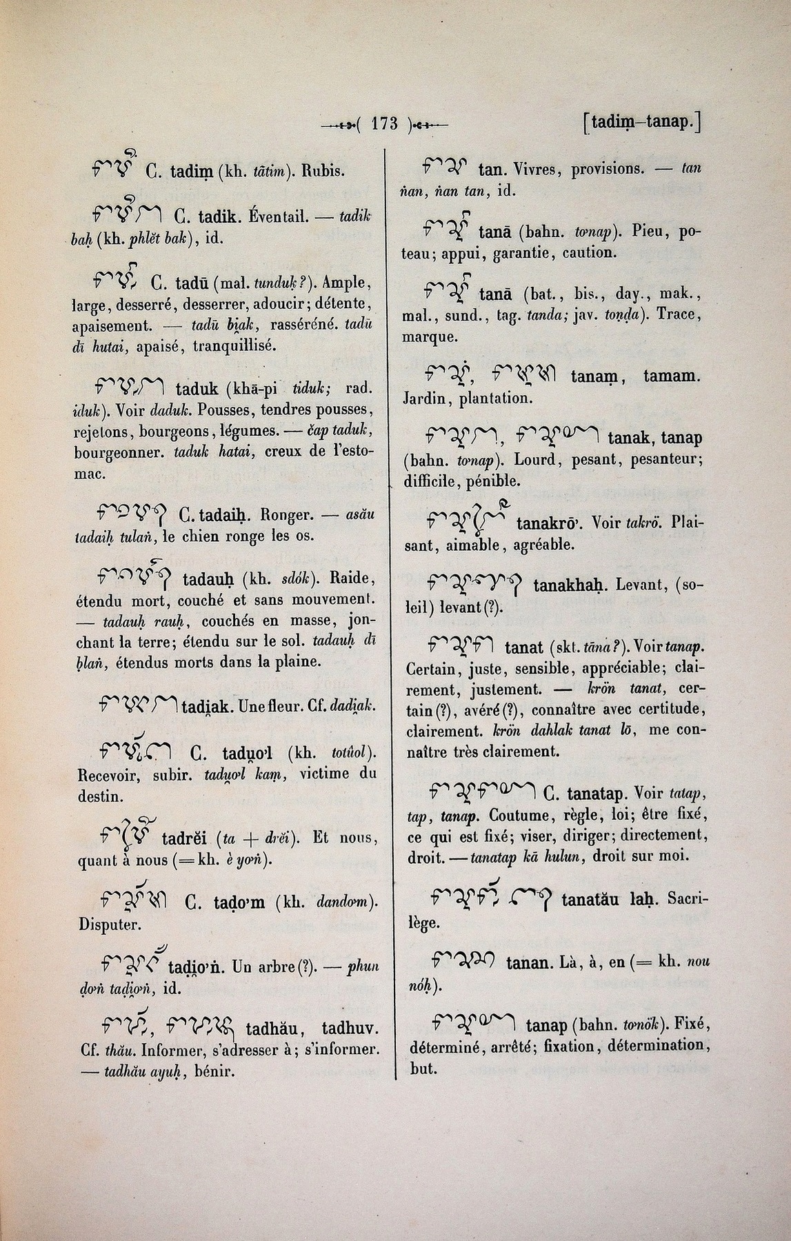 Quote this document Cabaton, Antoine; Aymonier, Etienne 1906 [accessed: 2026/2/5]. "tan" (Object Id: 10878). In Dictionnaire Cam-Français, E. Aymonier et A. Cabaton. ODSAS: https://www.odsas.net/object/10878.