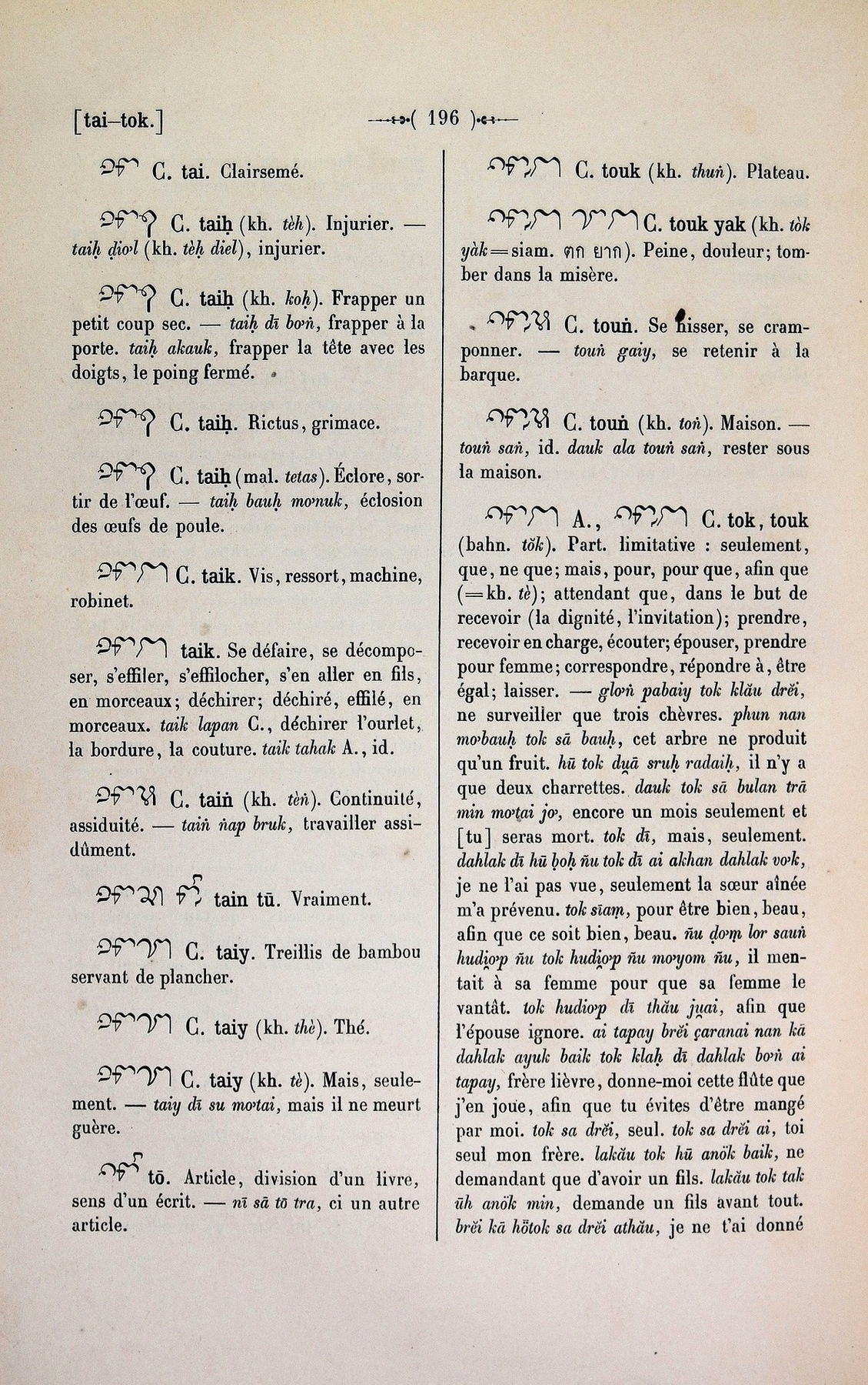 Quote this document Cabaton, Antoine; Aymonier, Etienne 1906 [accessed: 2026/2/5]. "tok" (Object Id: 10901). In Dictionnaire Cam-Français, E. Aymonier et A. Cabaton. ODSAS: https://www.odsas.net/object/10901.