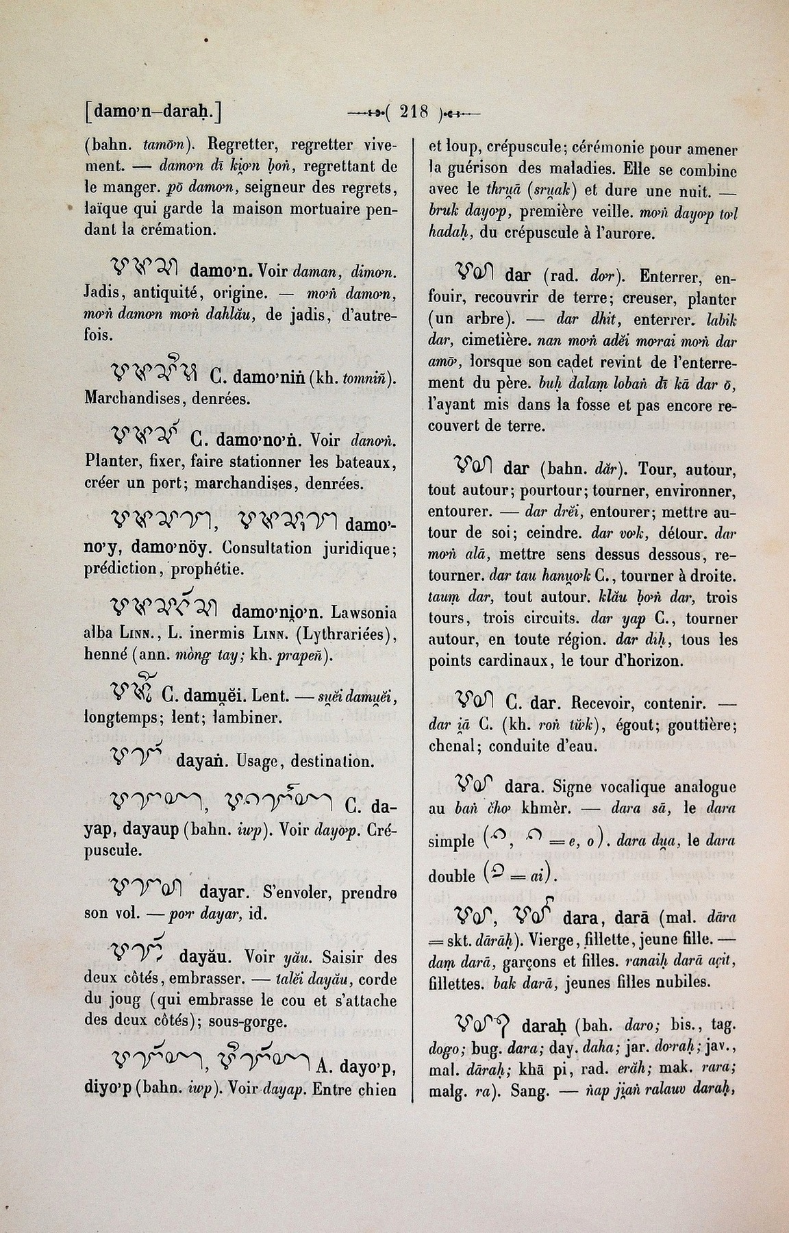 Quote this document Cabaton, Antoine; Aymonier, Etienne 1906 [accessed: 2026/2/5]. "dar" (Object Id: 10923). In Dictionnaire Cam-Français, E. Aymonier et A. Cabaton. ODSAS: https://www.odsas.net/object/10923.