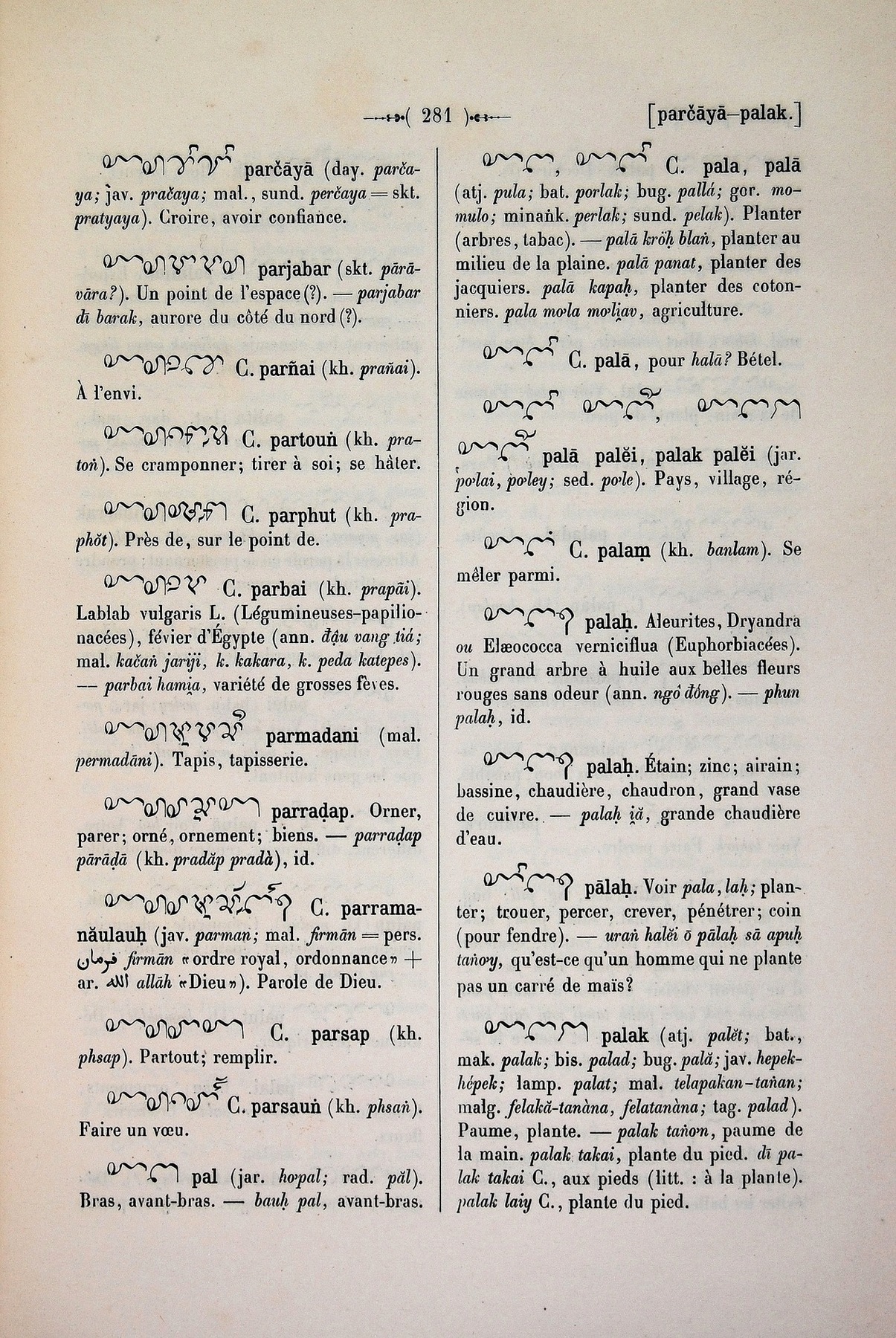 Quote this document Cabaton, Antoine; Aymonier, Etienne 1906 [accessed: 2026/2/5]. "pa: pal" (Object Id: 10986). In Dictionnaire Cam-Français, E. Aymonier et A. Cabaton. ODSAS: https://www.odsas.net/object/10986.