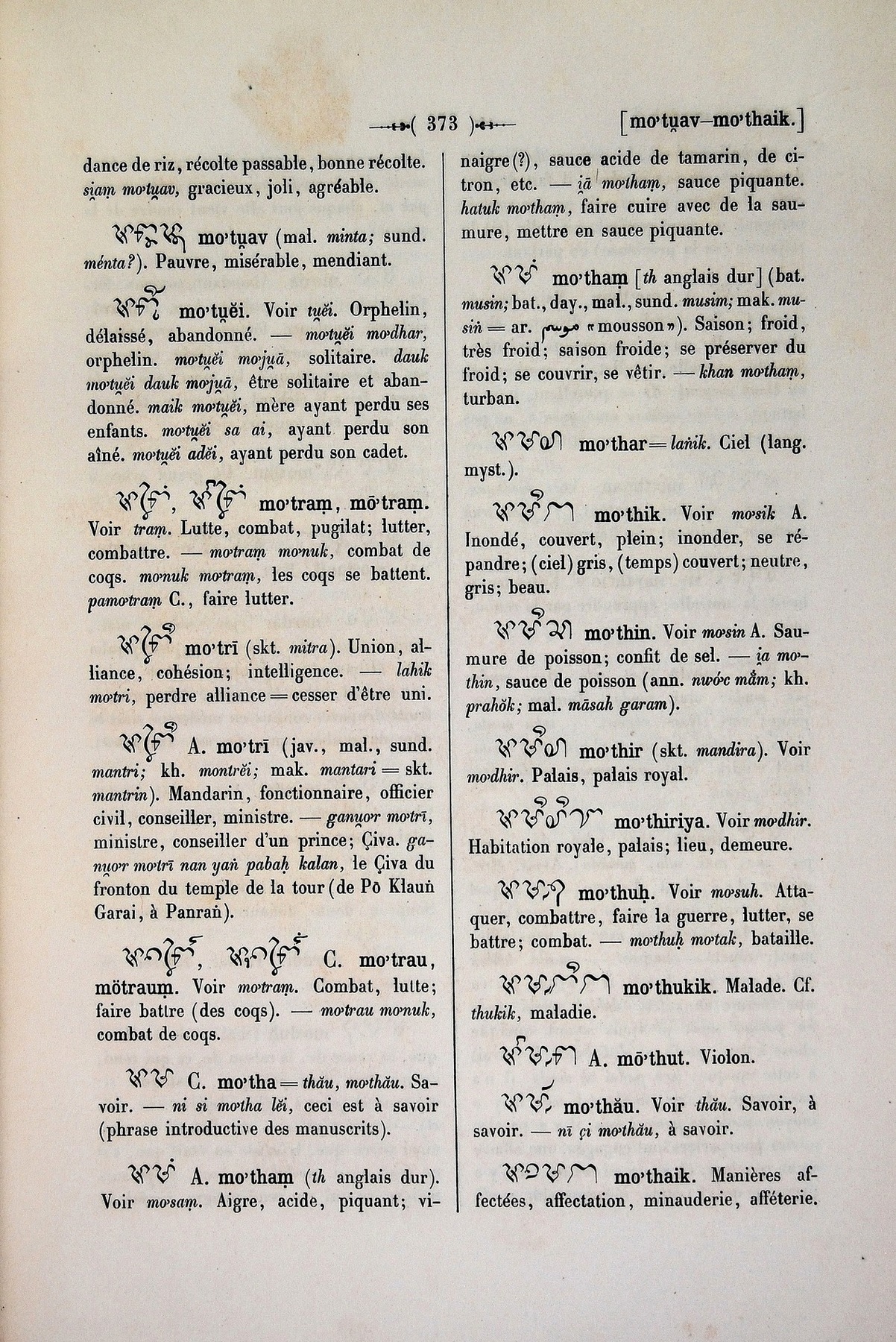 Quote this document Cabaton, Antoine; Aymonier, Etienne 1906 [accessed: 2026/2/5]. "Dictionnaire Cam-Français, E. Aymonier et A. Cabaton" (Object Id: 11078). In Dictionnaire Cam-Français, E. Aymonier et A. Cabaton. ODSAS: https://www.odsas.net/object/11078.