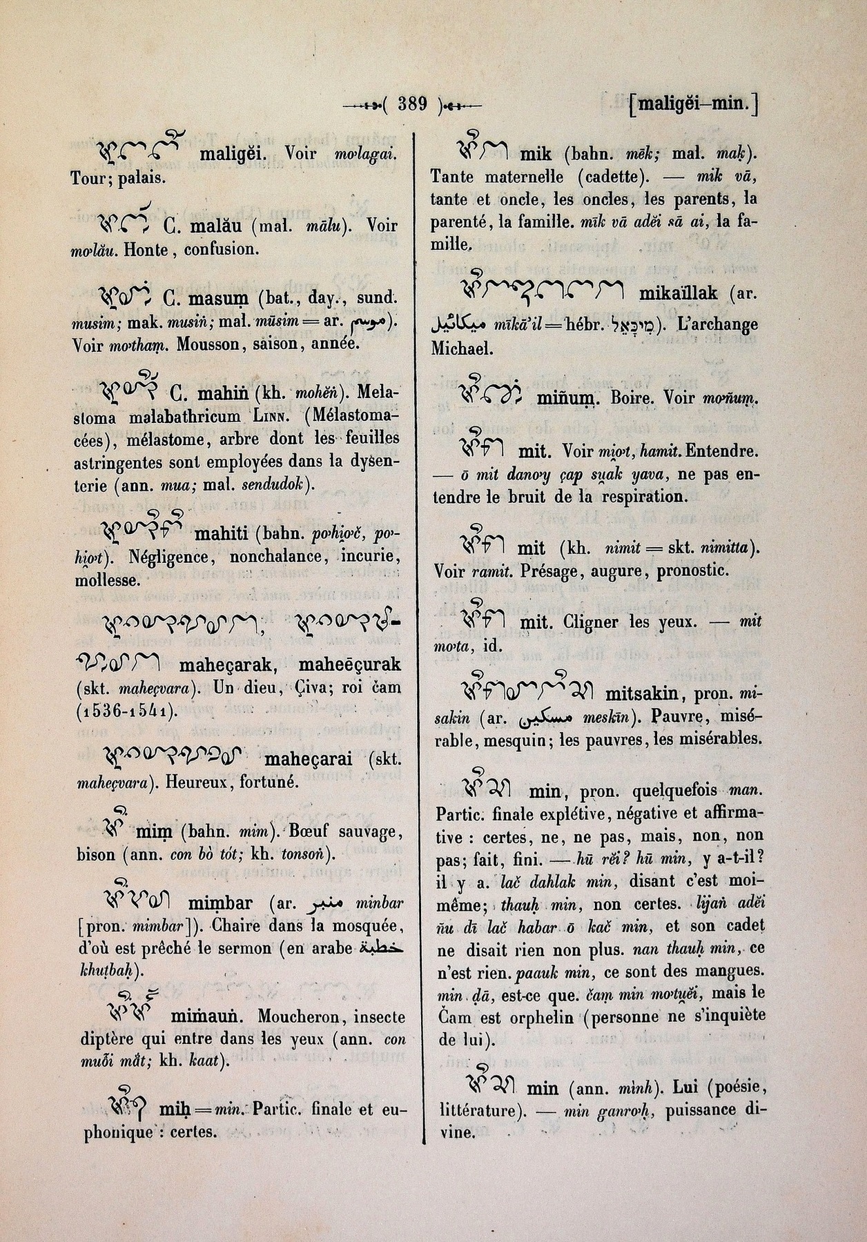 Quote this document Cabaton, Antoine; Aymonier, Etienne 1906 [accessed: 2026/2/5]. "mi" (Object Id: 11094). In Dictionnaire Cam-Français, E. Aymonier et A. Cabaton. ODSAS: https://www.odsas.net/object/11094.