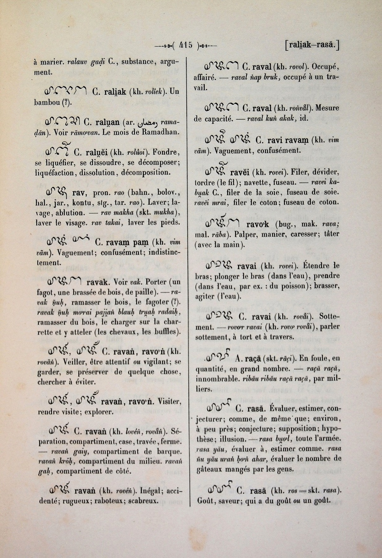 Quote this document Cabaton, Antoine; Aymonier, Etienne 1906 [accessed: 2026/2/5]. "ras" (Object Id: 11120). In Dictionnaire Cam-Français, E. Aymonier et A. Cabaton. ODSAS: https://www.odsas.net/object/11120.
