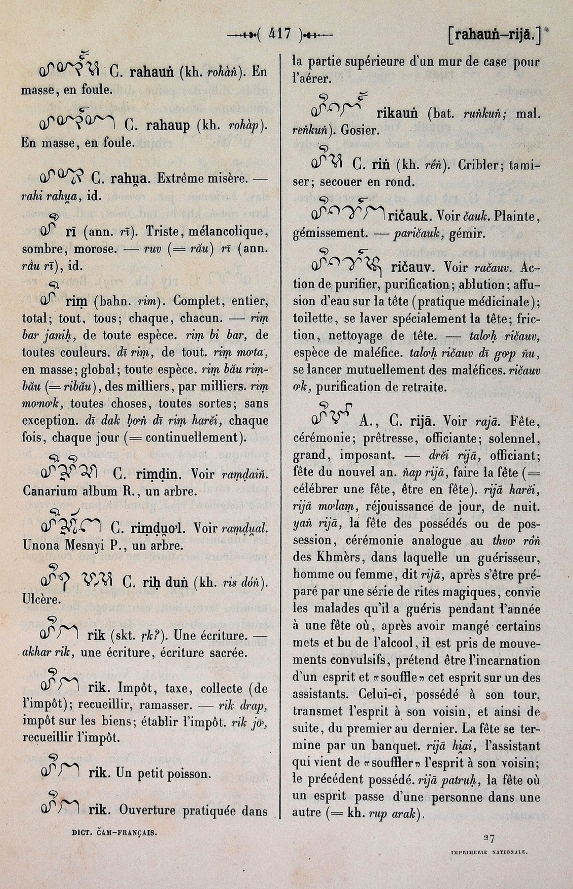 Quote this document Cabaton, Antoine; Aymonier, Etienne 1906 [accessed: 2026/2/5]. "ri" (Object Id: 11122). In Dictionnaire Cam-Français, E. Aymonier et A. Cabaton. ODSAS: https://www.odsas.net/object/11122.