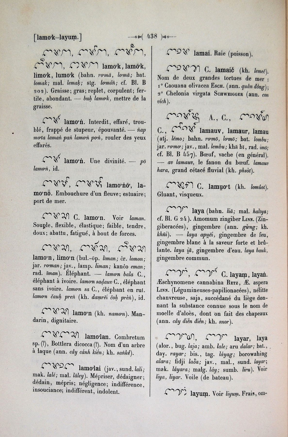 Quote this document Cabaton, Antoine; Aymonier, Etienne 1906 [accessed: 2026/2/5]. "lay" (Object Id: 11143). In Dictionnaire Cam-Français, E. Aymonier et A. Cabaton. ODSAS: https://www.odsas.net/object/11143.