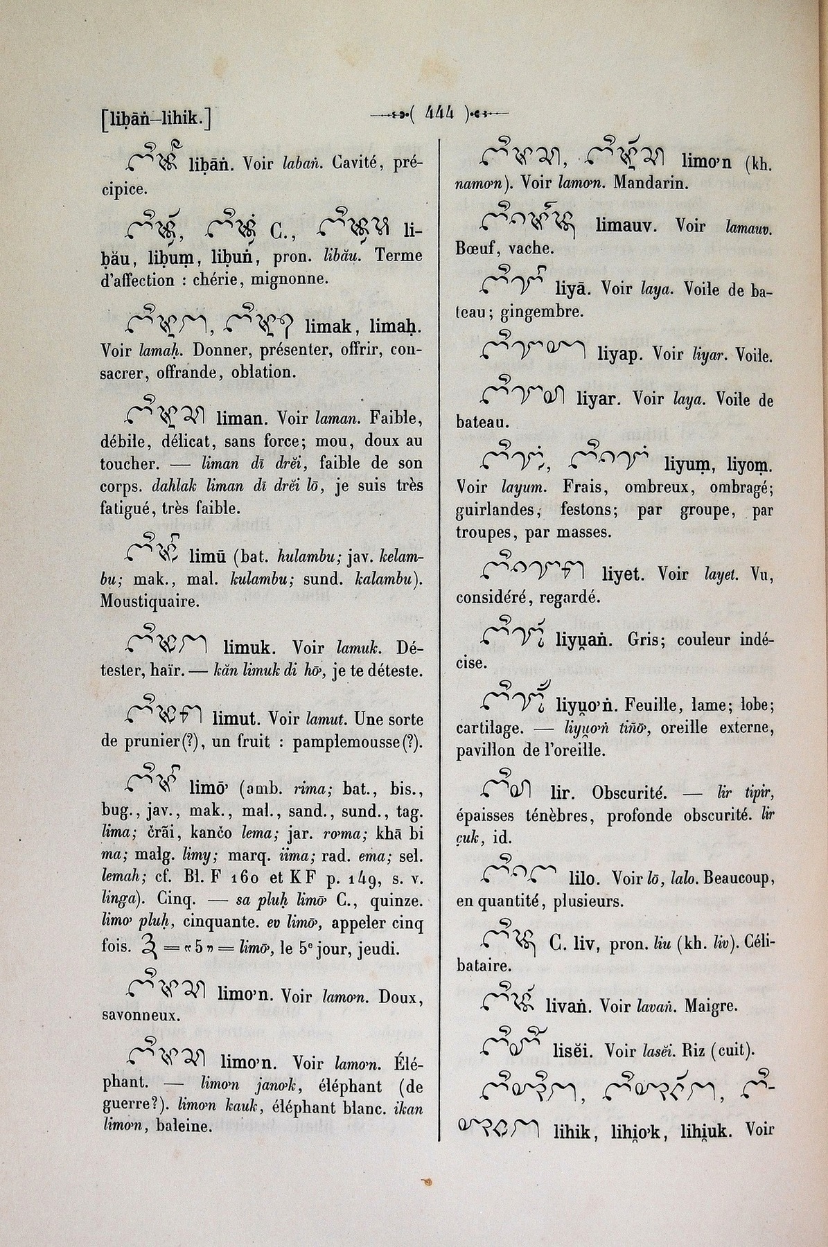 Quote this document Cabaton, Antoine; Aymonier, Etienne 1906 [accessed: 2026/2/5]. "lih" (Object Id: 11149). In Dictionnaire Cam-Français, E. Aymonier et A. Cabaton. ODSAS: https://www.odsas.net/object/11149.