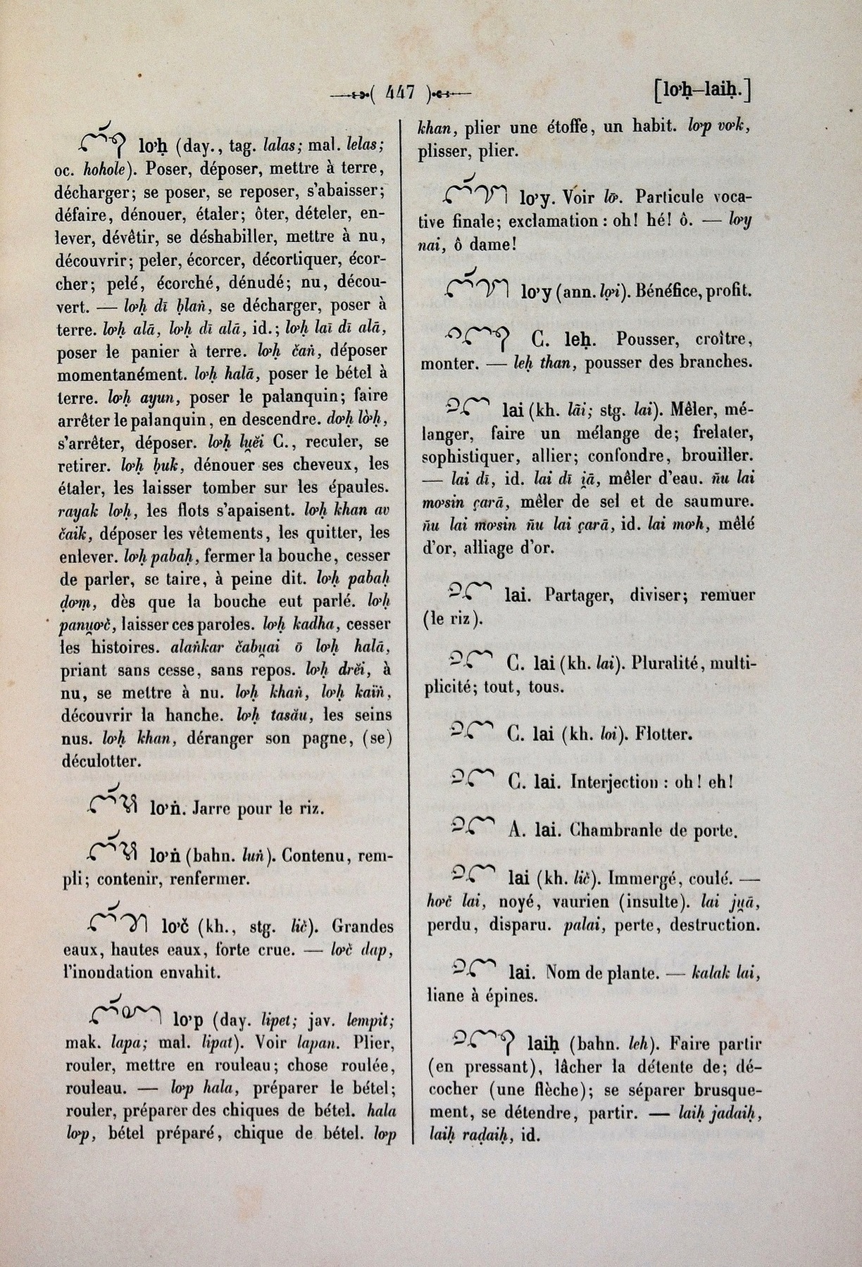 Quote this document Cabaton, Antoine; Aymonier, Etienne 1906 [accessed: 2026/2/5]. "lai" (Object Id: 11152). In Dictionnaire Cam-Français, E. Aymonier et A. Cabaton. ODSAS: https://www.odsas.net/object/11152.