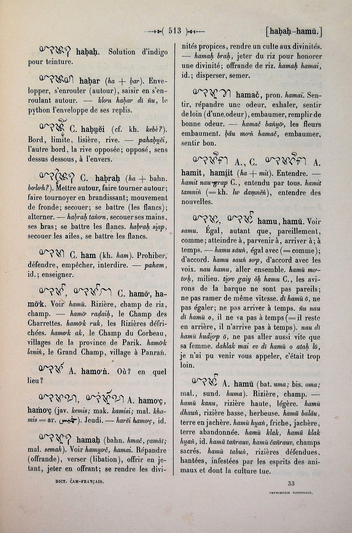 Dictionnaire Cam-Français, E. Aymonier et A. Cabaton [