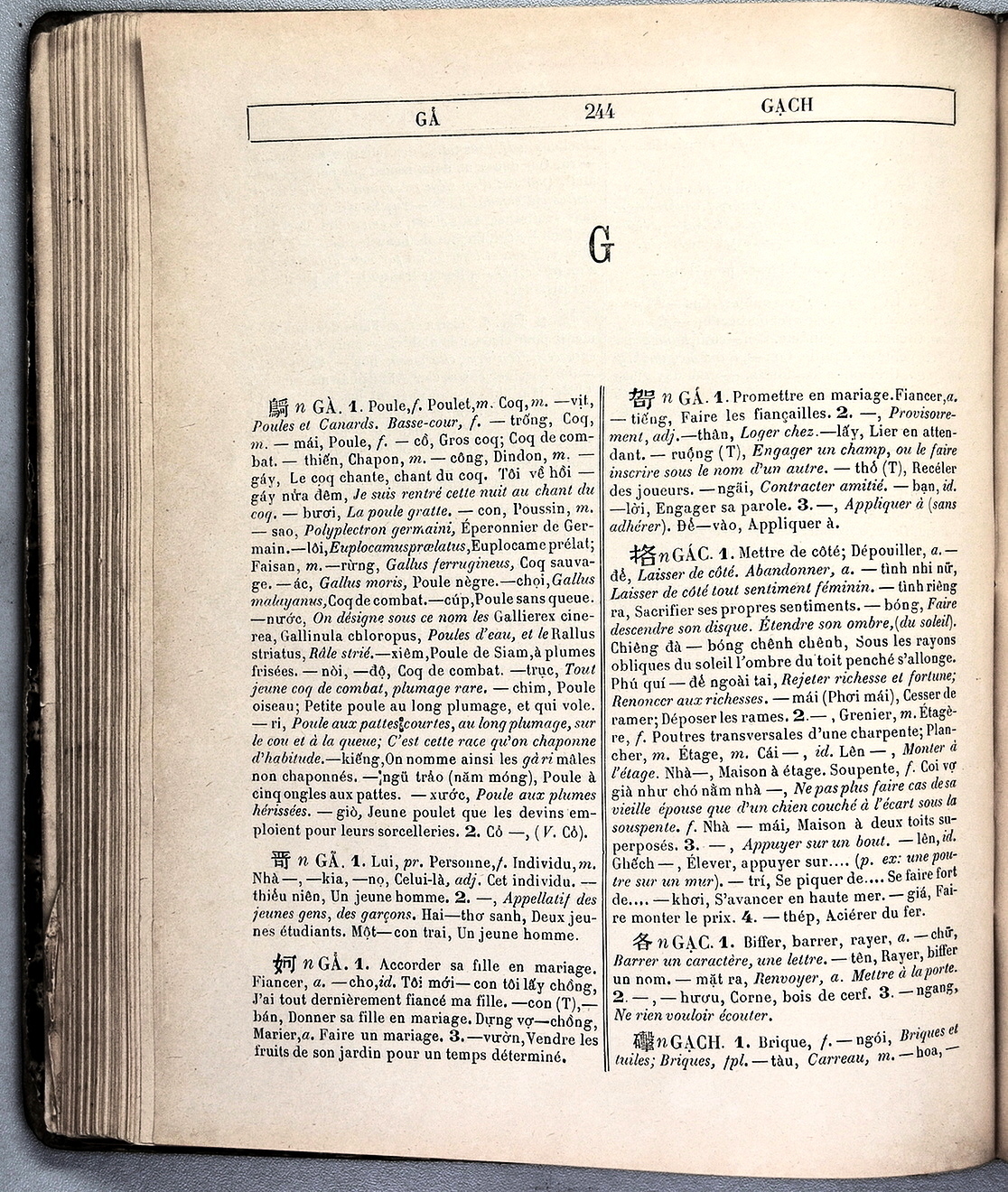 Quote this document Génibrel, J.F.M. 1898 [accessed: 2026/2/5]. "lettre G" (Object Id: 11546). In Dictionnaire Annamite-Français, par J.F.M. Génibrel. ODSAS: https://www.odsas.net/object/11546.