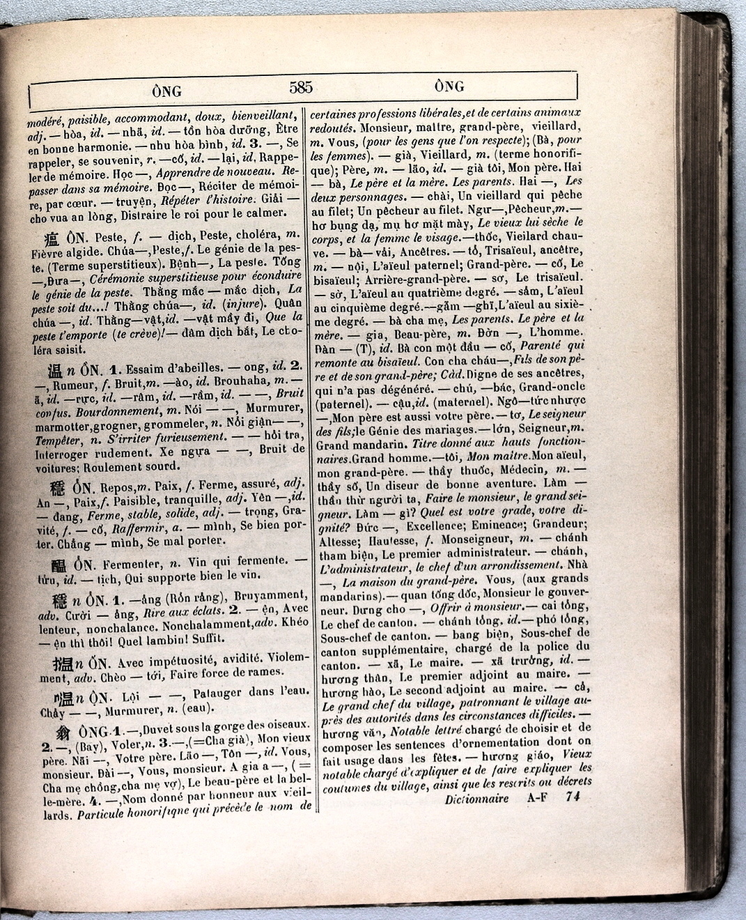 Dictionnaire Annamite-Français, par J.F.M. Génibrel / sous partie lettre ÔNG / Génibrel, J.F.M. /  Viet Nam/ Viet Nam