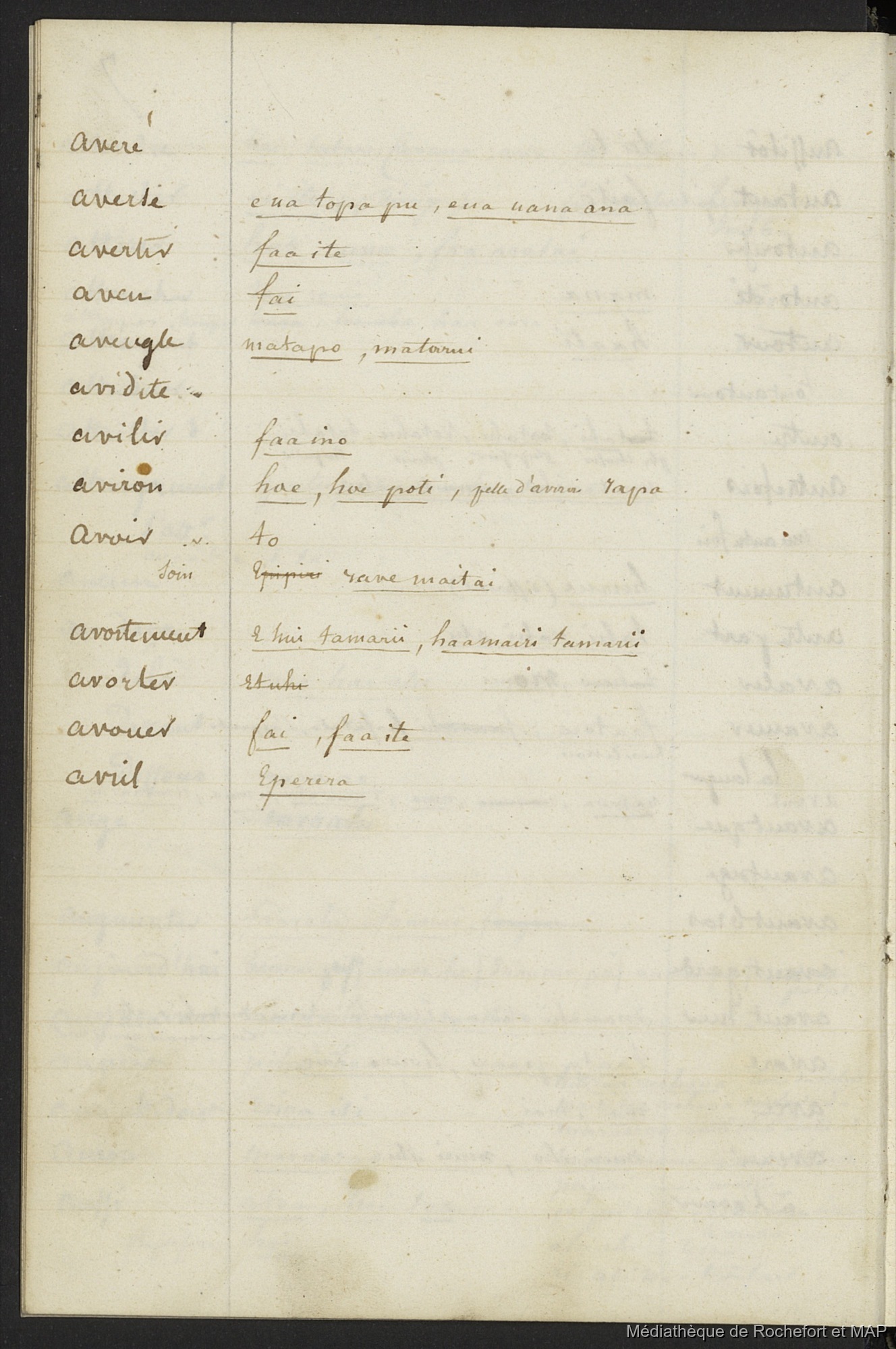 Quote this document Lesson, Pierre-Adolphe 1844-1849 [accessed: 2026/2/5]. "Vocabulaire de l'Ile de Tahiti 1844 - 1849 (B172996201_Ms_00117)" (Object Id: 120270). In Vocabulaire de l'Ile de Tahiti 1844 - 1849 (B172996201_Ms_00117). ODSAS: https://www.odsas.net/object/120270.