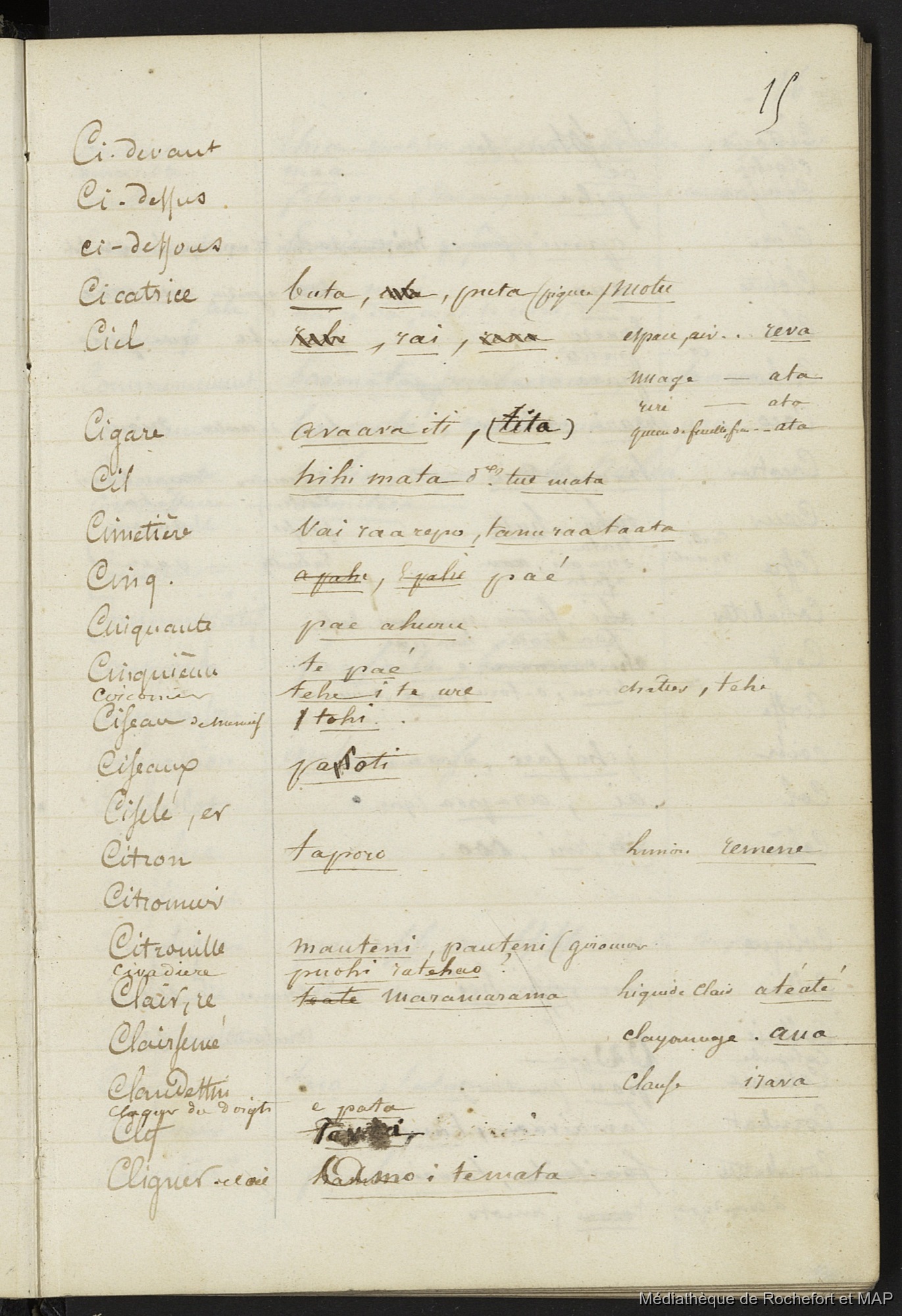 Vocabulaire de l'Ile de Tahiti 1844 - 1849 (B172996201_Ms_00117) [Set(s) 1178]