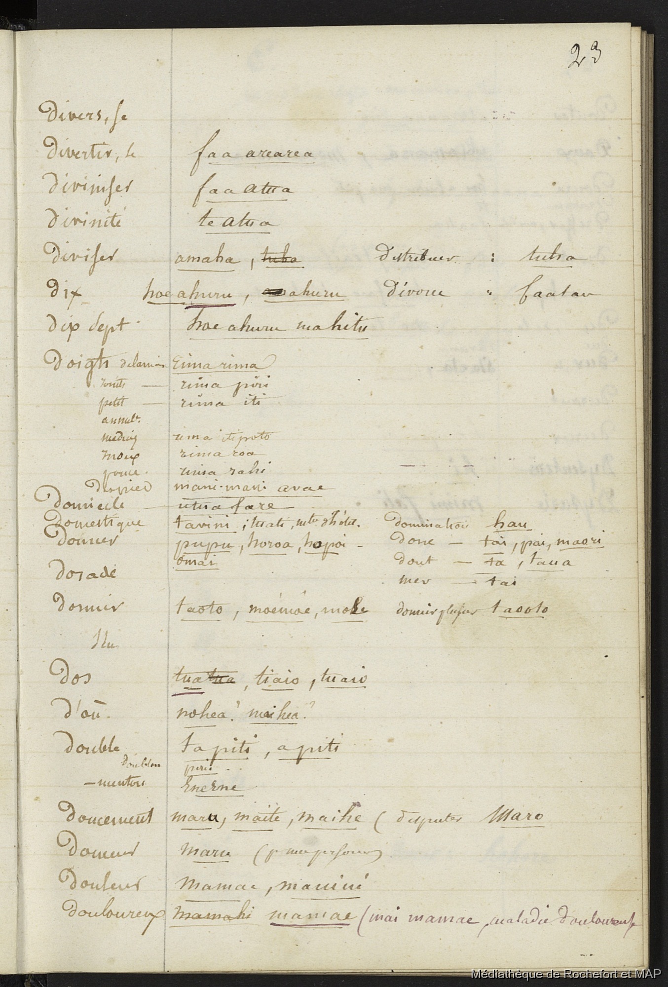 Lesson, Pierre-Adolphe 1844-1849 [accessed: 2026/2/7]. "Vocabulaire de l'Ile de Tahiti 1844 - 1849 (B172996201_Ms_00117)" (Object Id: 120301). In