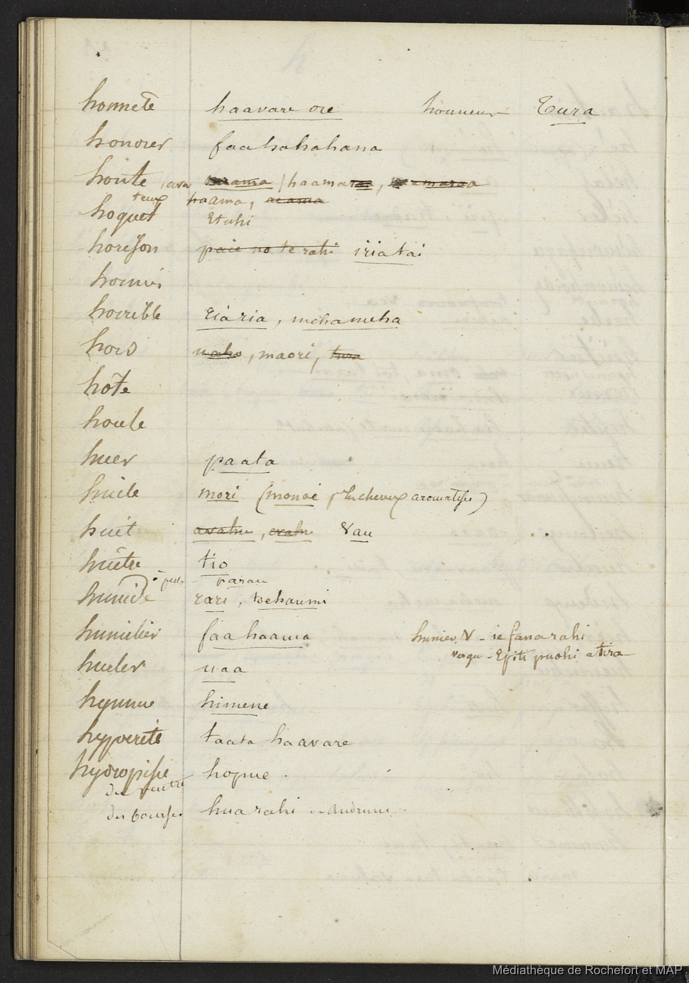 Lesson, Pierre-Adolphe 1844-1849 [accessed: 2026/2/5]. "Vocabulaire de l'Ile de Tahiti 1844 - 1849 (B172996201_Ms_00117)" (Object Id: 120324). In