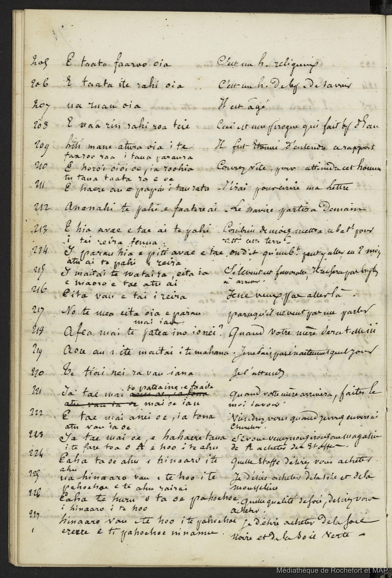 Lesson, Pierre-Adolphe 1844-1849 [accessed: 2026/2/5]. "Vocabulaire de l'Ile de Tahiti 1844 - 1849 (B172996201_Ms_00117)" (Object Id: 120402). In