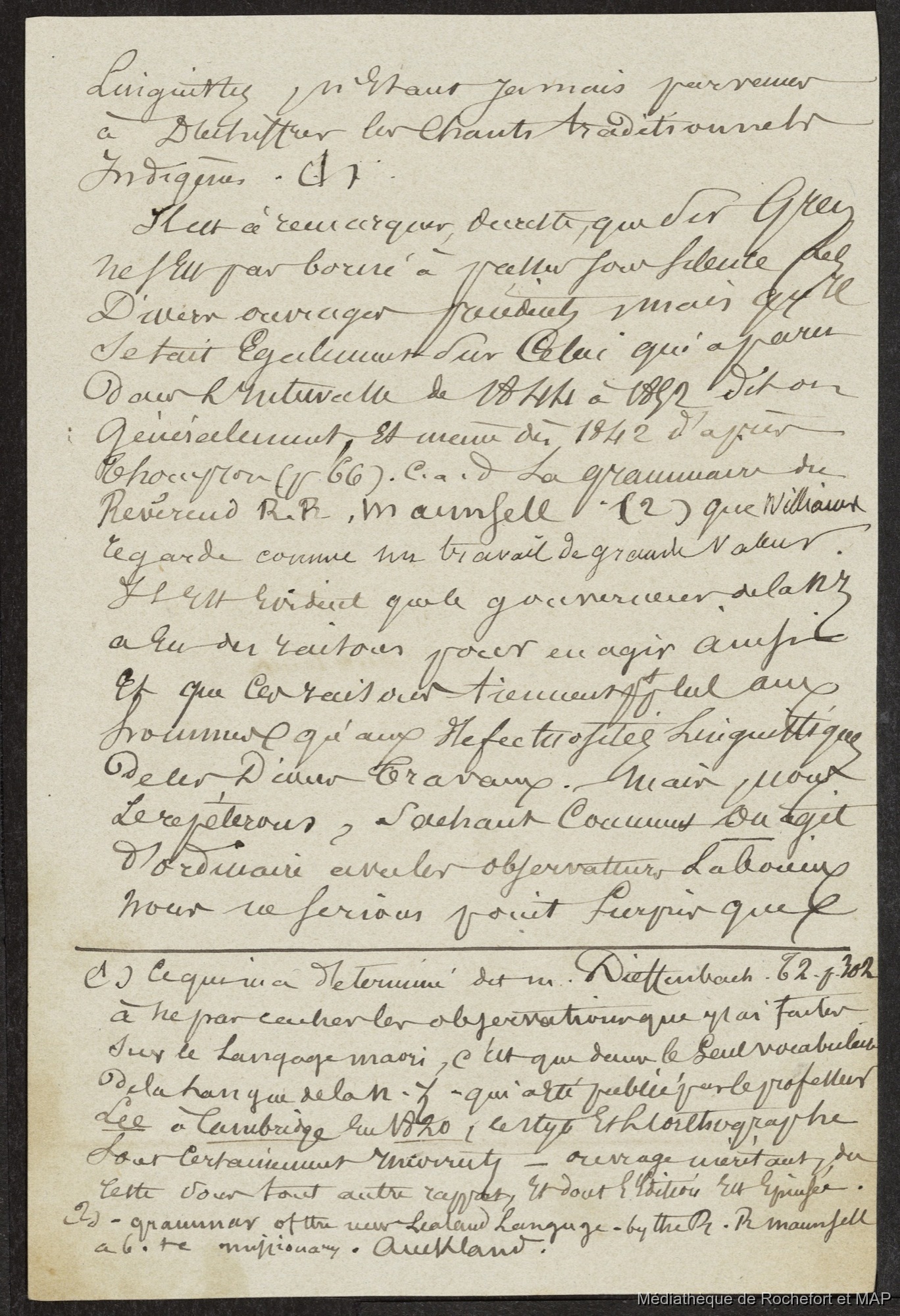 Lesson, Pierre-Adolphe [accessed: 2025/12/8]. "Notes pour la préface du dictionnaire tahitien traduit par moi (B172996201_Ms00058-02)" (Object Id: 120757). In