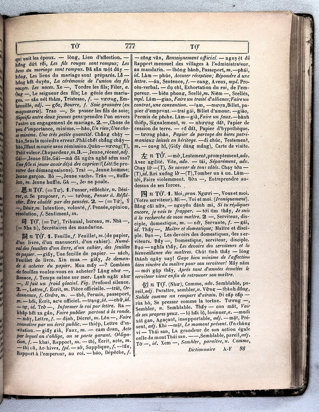 Quote this document Génibrel, J.F.M. 1898 [accessed: 2026/2/5]. "Dictionnaire Annamite-Français, par J.F.M. Génibrel" (Object Id: 12079). In Dictionnaire Annamite-Français, par J.F.M. Génibrel. ODSAS: https://www.odsas.net/object/12079.