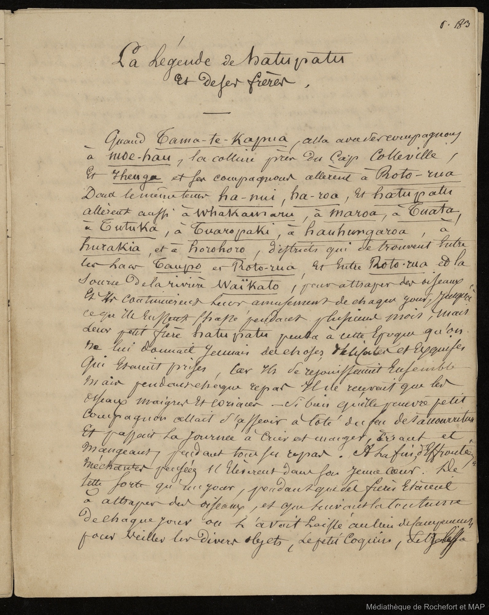 Lesson, Pierre-Adolphe [accessed: 2025/12/8]. "Légendes de Nouvelle-Zélande et de Polynésie (B172996201_Ms00131)" (Object Id: 120953). In