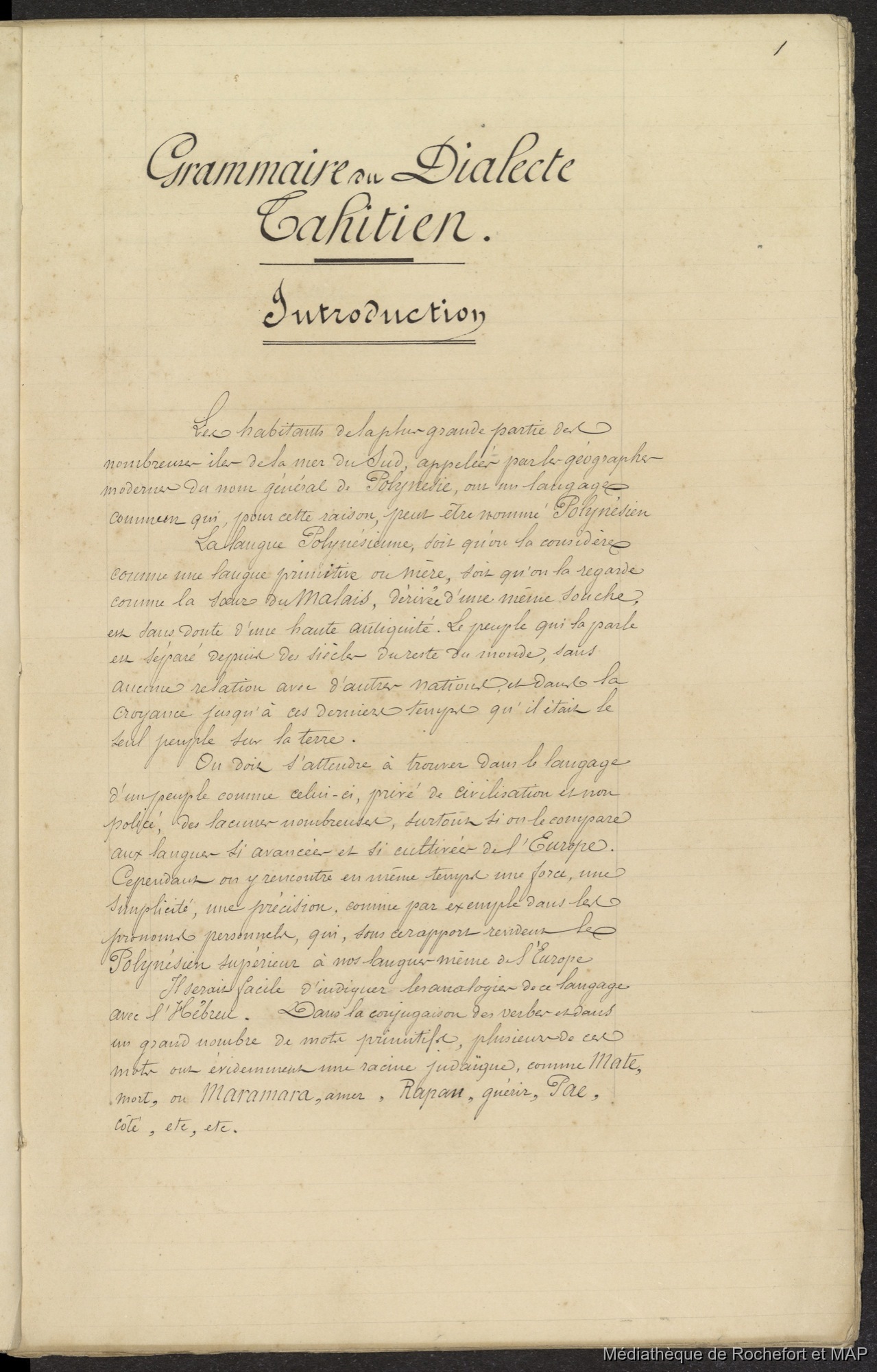 Lesson, Pierre-Adolphe [accessed: 2025/12/8]. "Grammaire du dialecte tahitien (B172996201_Ms00140)" (Object Id: 121305). In