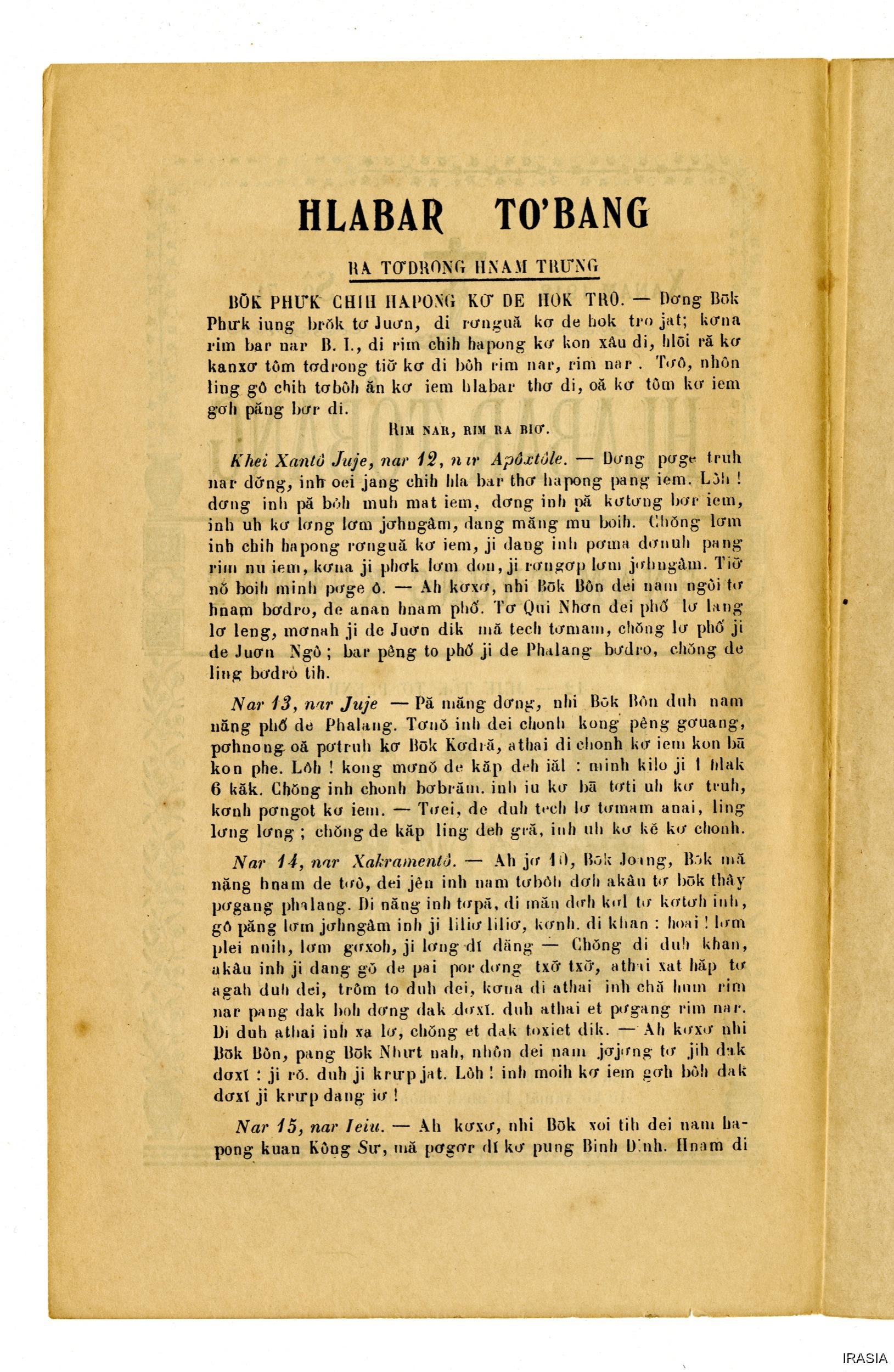 Quote this document Dournes, Jacques 1946-1955 [accessed: 2026/2/5]. "Evangiles : Hlabar tobang" (Object Id: 125732). In Evangiles : Hlabar tobang. ODSAS: https://www.odsas.net/object/125732.