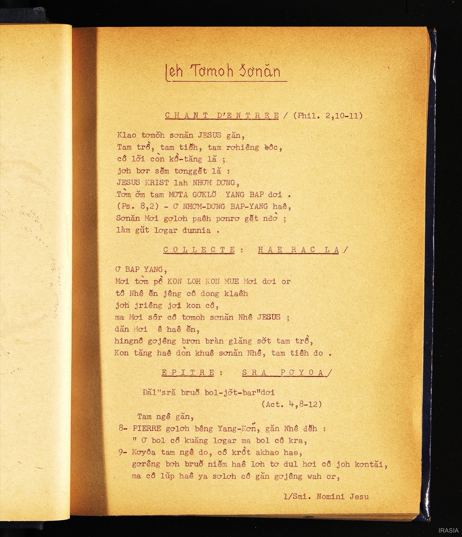 Quote this document Dournes, Jacques 1946-1955 [accessed: 2026/2/5]. "Evangiles : Sra lo hyang" (Object Id: 146210). In Evangiles : Sra lo hyang. ODSAS: https://www.odsas.net/object/146210.