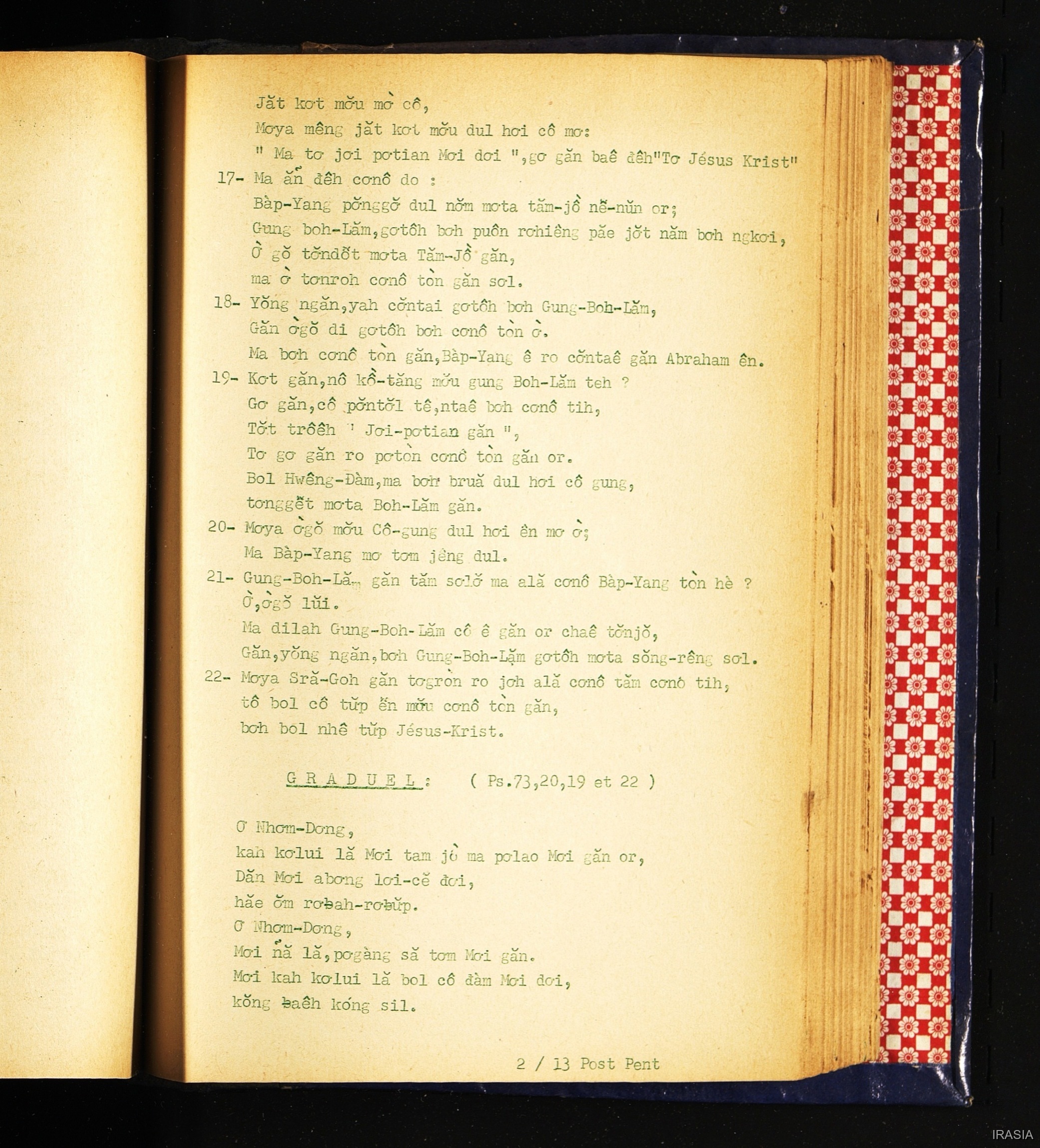 Quote this document Dournes, Jacques 1946-1955 [accessed: 2026/2/5]. "Evangiles : Sra lo hyang" (Object Id: 146589). In Evangiles : Sra lo hyang. ODSAS: https://www.odsas.net/object/146589.