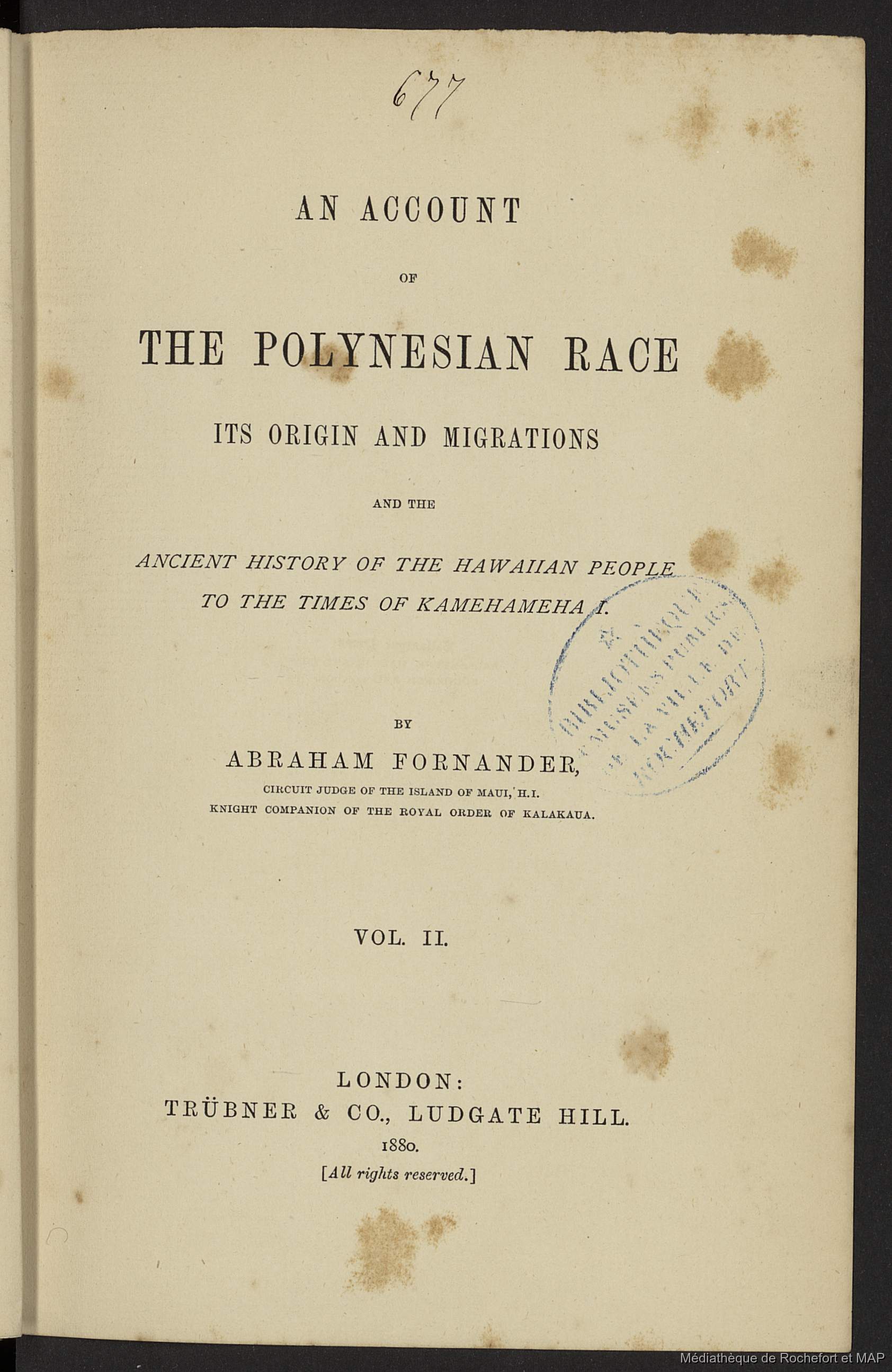 Fornander, Abraham 1878-1880 [accessed: 2026/2/5]. "An account of the Polynesian race, its origin and migrations : And the ancient history of the Hawaiian people to times of Kamehameha I (B172996201_19_P_15791)" (Object Id: 150127). In