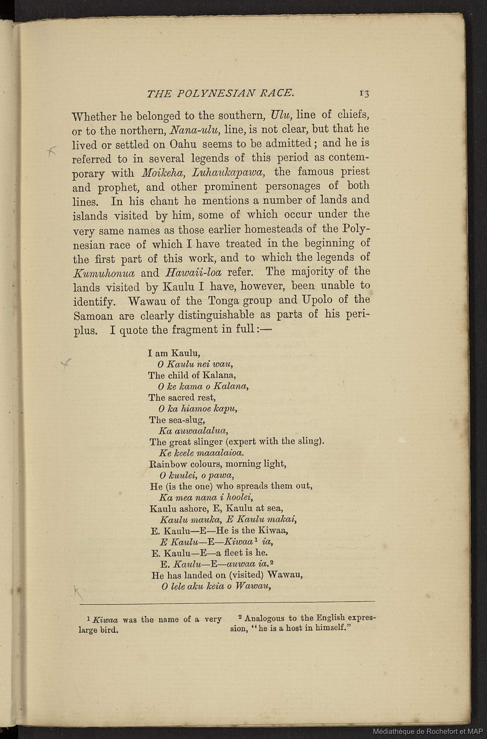 Fornander, Abraham 1878-1880 [accessed: 2026/2/5]. "An account of the Polynesian race, its origin and migrations : And the ancient history of the Hawaiian people to times of Kamehameha I (B172996201_19_P_15791)" (Object Id: 150145). In