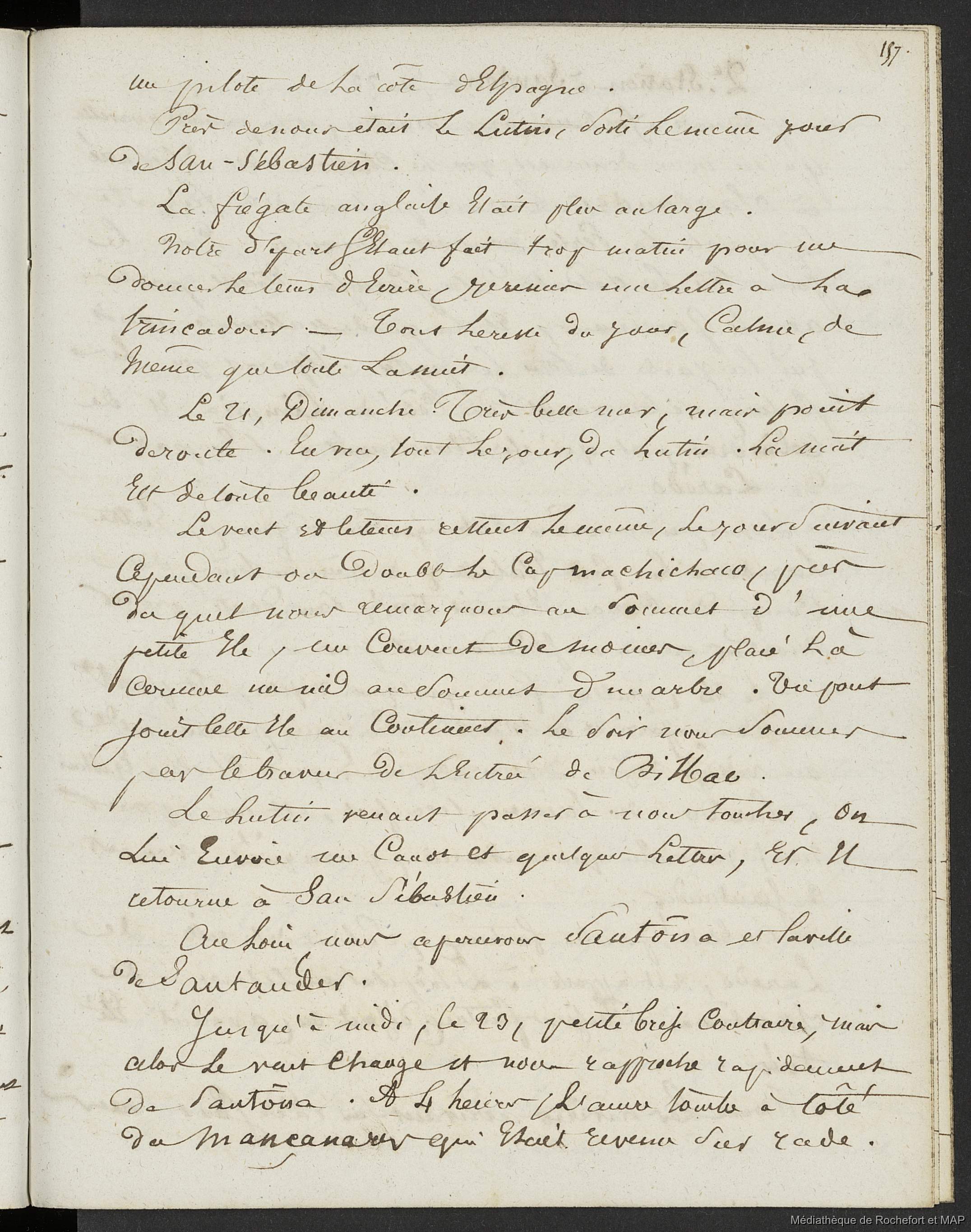 Lesson, Pierre-Adolphe 1834 [accessed: 2026/2/5]. "Journal du Brick Le Hussard, Station en Espagne (B172996201_BM08126)" (Object Id: 151645). In