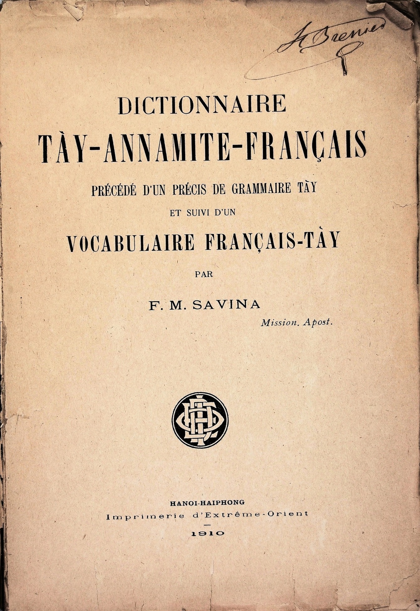 Dictionnaire Tay-Annamite-Français, F.M. Savina