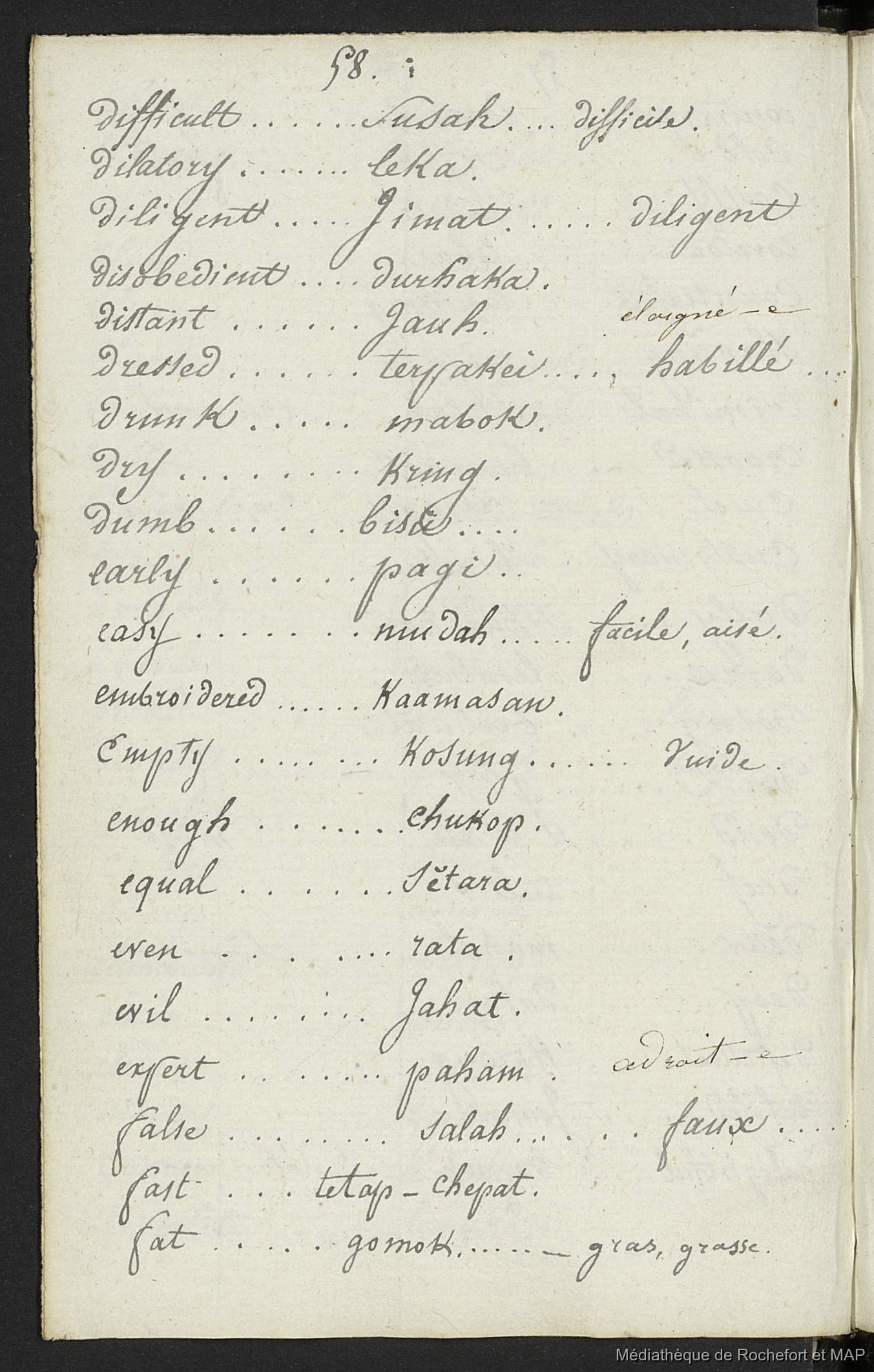 Lesson, Pierre-Adolphe [accessed: 2025/12/10]. "Vocabulaire anglais, malais et français (B172996201_BM08191)" (Object Id: 157939). In