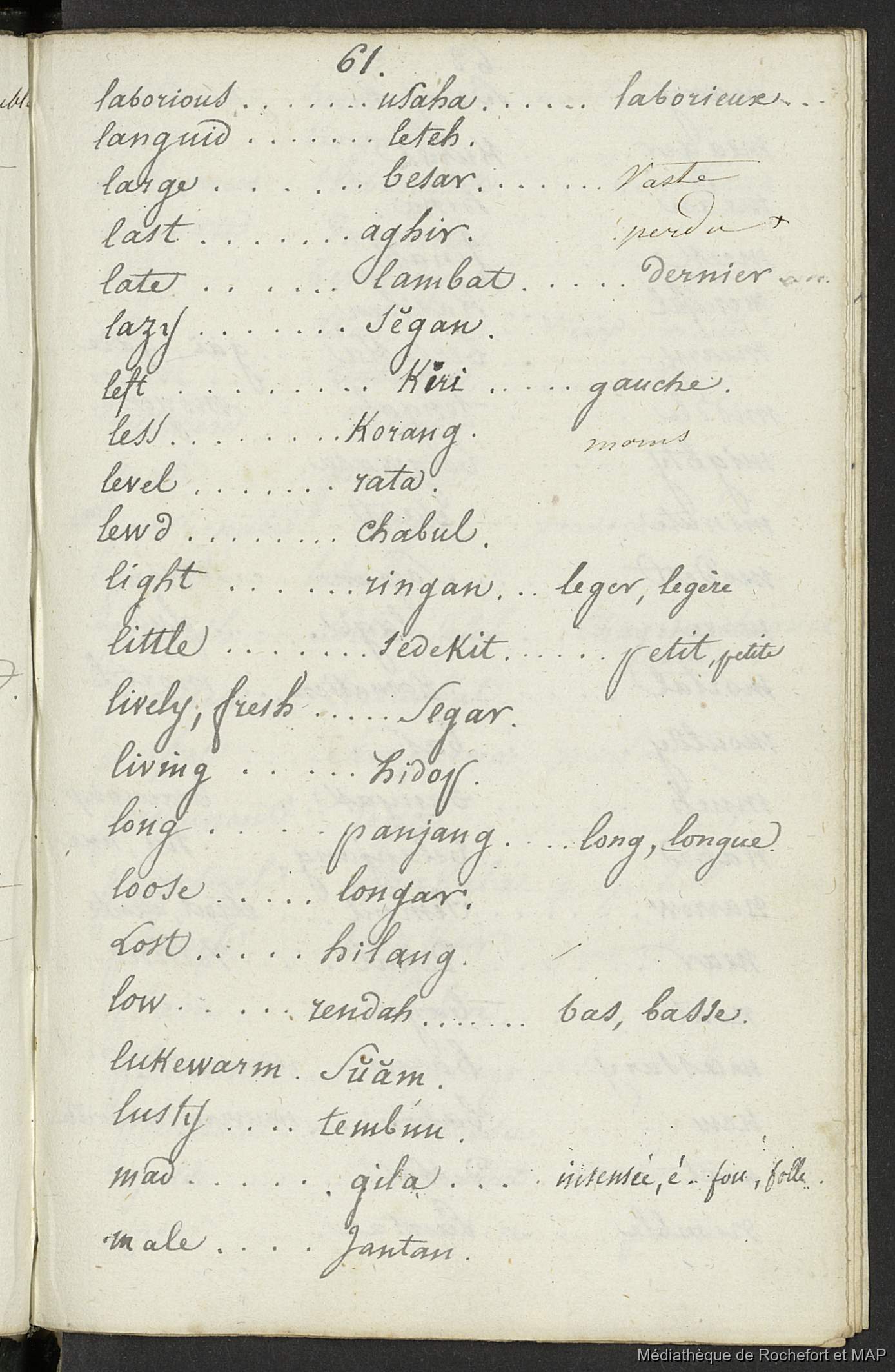 Lesson, Pierre-Adolphe [accessed: 2025/12/8]. "Vocabulaire anglais, malais et français (B172996201_BM08191)" (Object Id: 157942). In