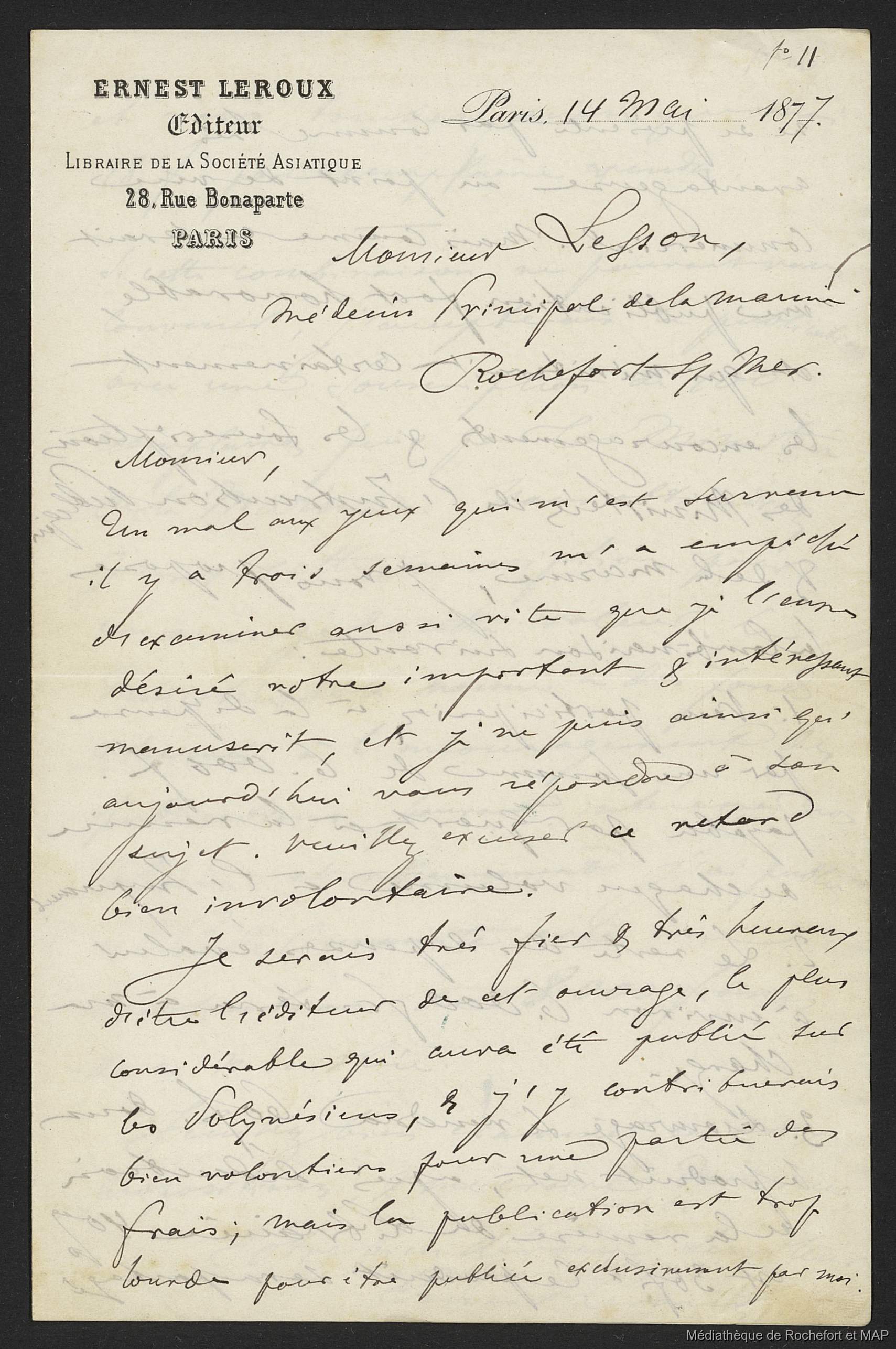 Quote this document Lesson, Pierre-Adolphe [accessed: 2025/12/8]. "Correspondance avec Ernest Leroux, éditeur (B172996201_Ms00058-06)" (Object Id: 158724). In Correspondance avec Ernest Leroux, éditeur (B172996201_Ms00058-06). ODSAS: https://www.odsas.net/object/158724.
