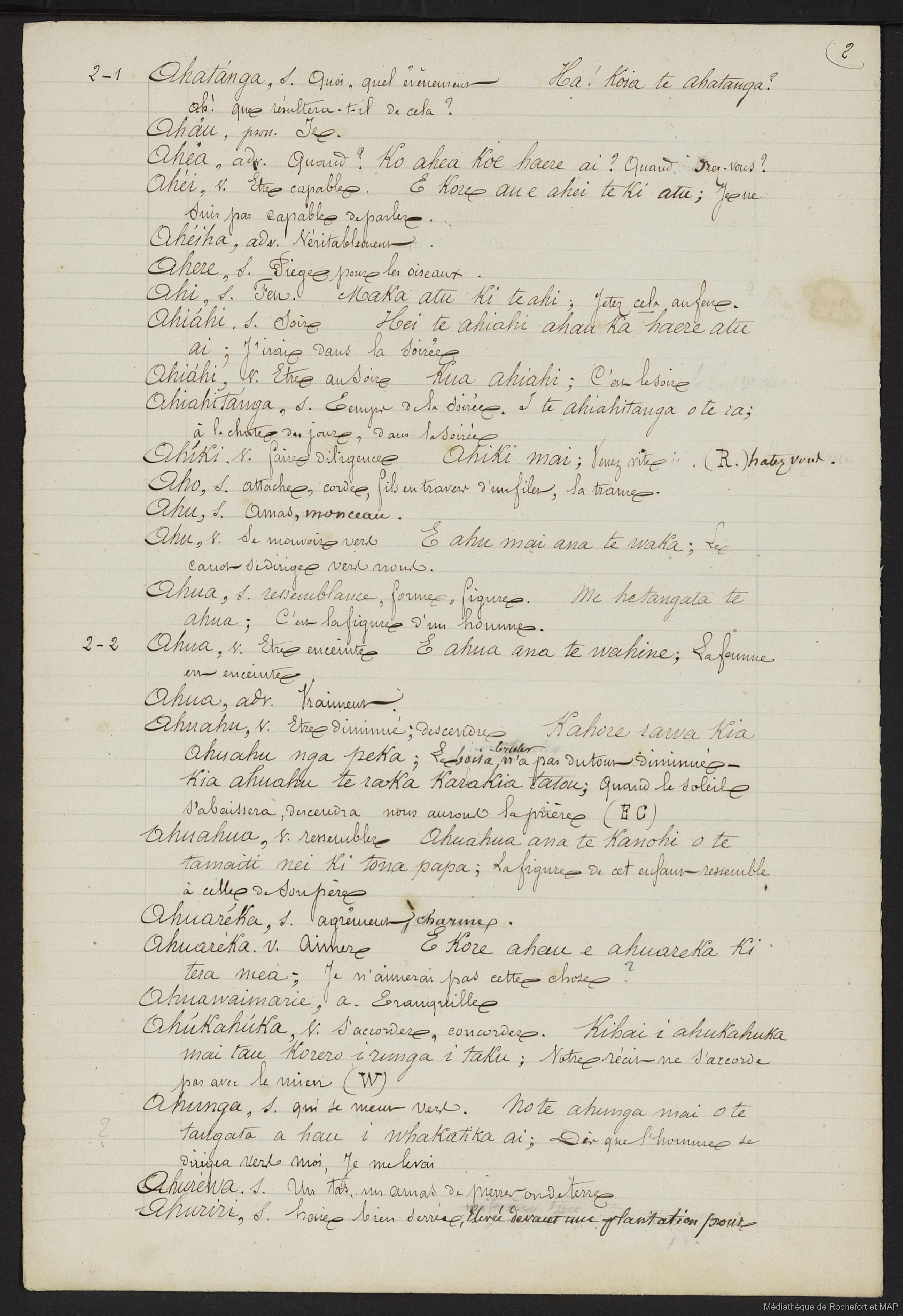 Lesson, Pierre-Adolphe [accessed: 2025/12/8]. "Dictionnaire Français-nouveau Zélandais (B172996201_Ms00129)" (Object Id: 159569). In