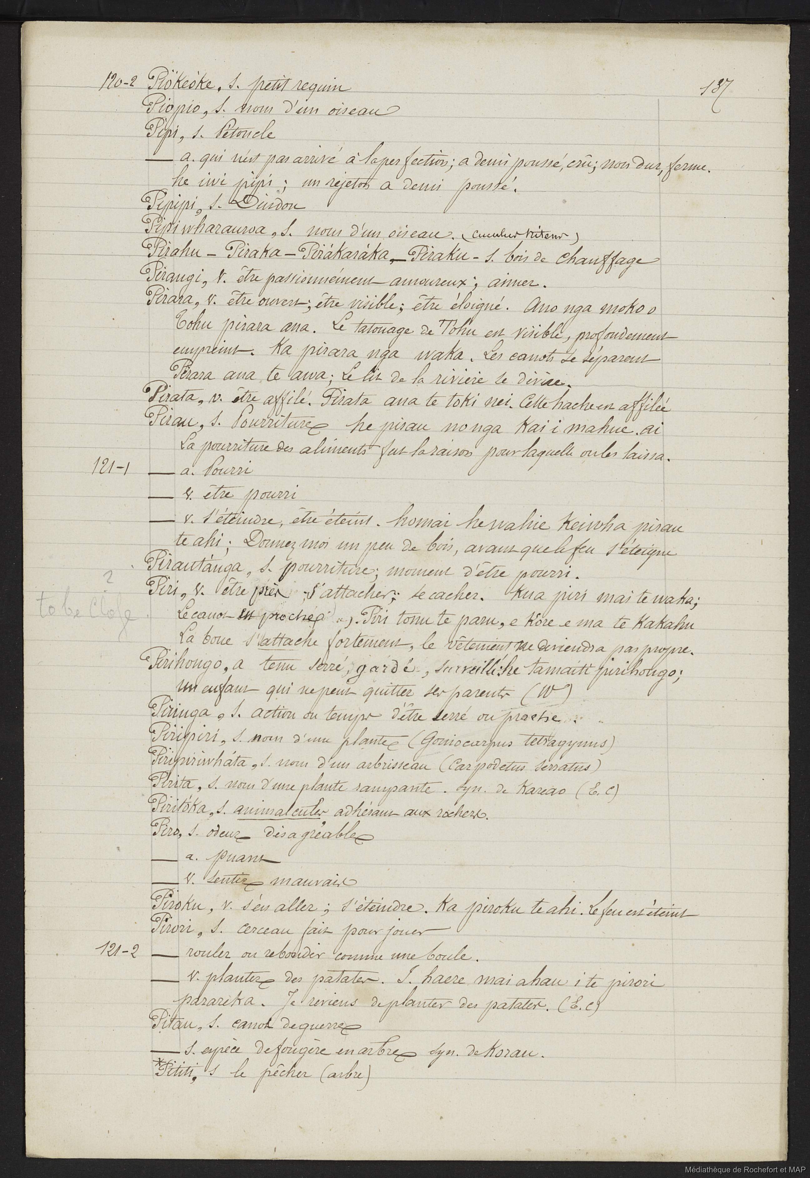 Lesson, Pierre-Adolphe [accessed: 2025/12/11]. "Dictionnaire Français-nouveau Zélandais (B172996201_Ms00129)" (Object Id: 159705). In