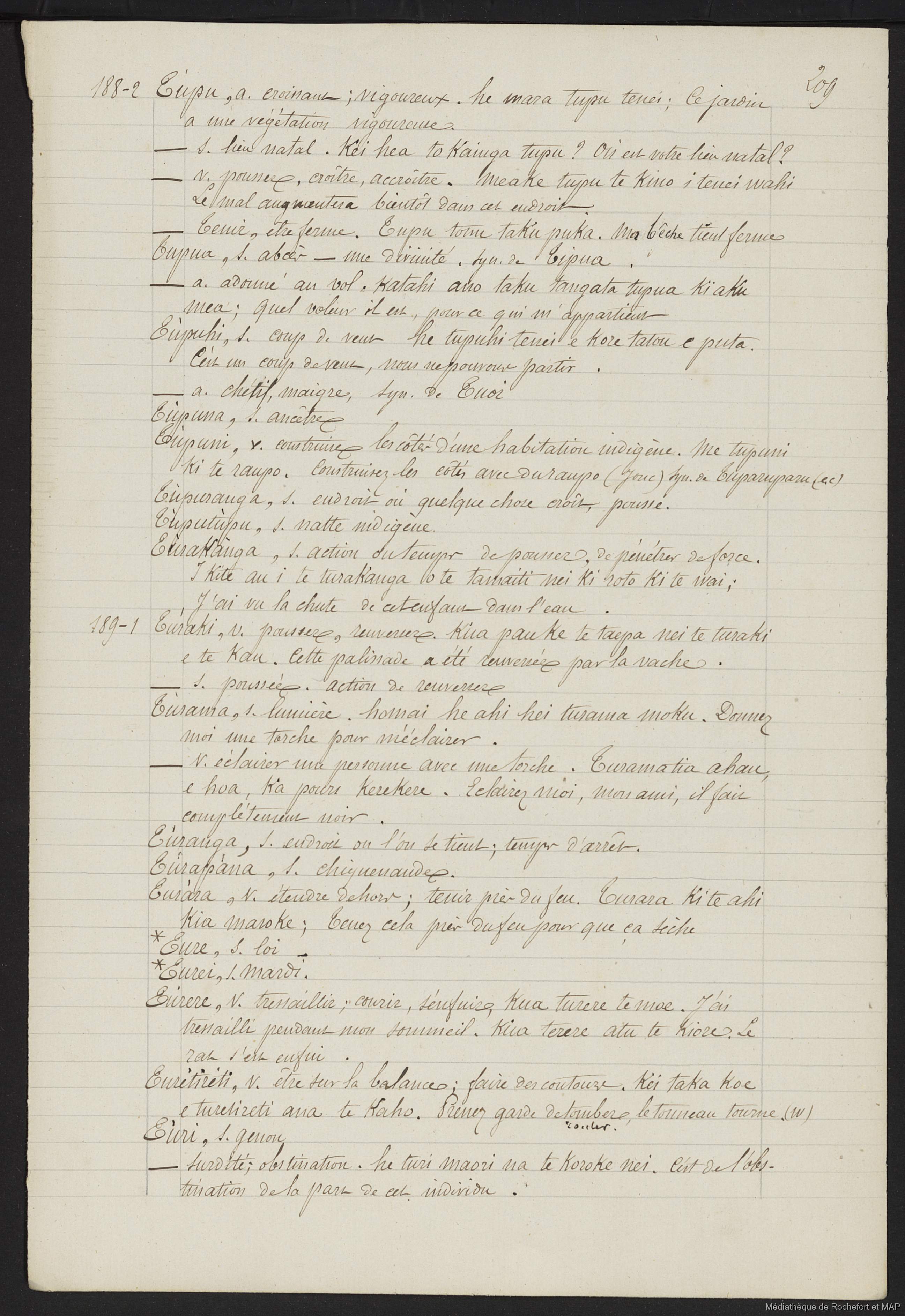 Lesson, Pierre-Adolphe [accessed: 2025/12/11]. "Dictionnaire Français-nouveau Zélandais (B172996201_Ms00129)" (Object Id: 159778). In
