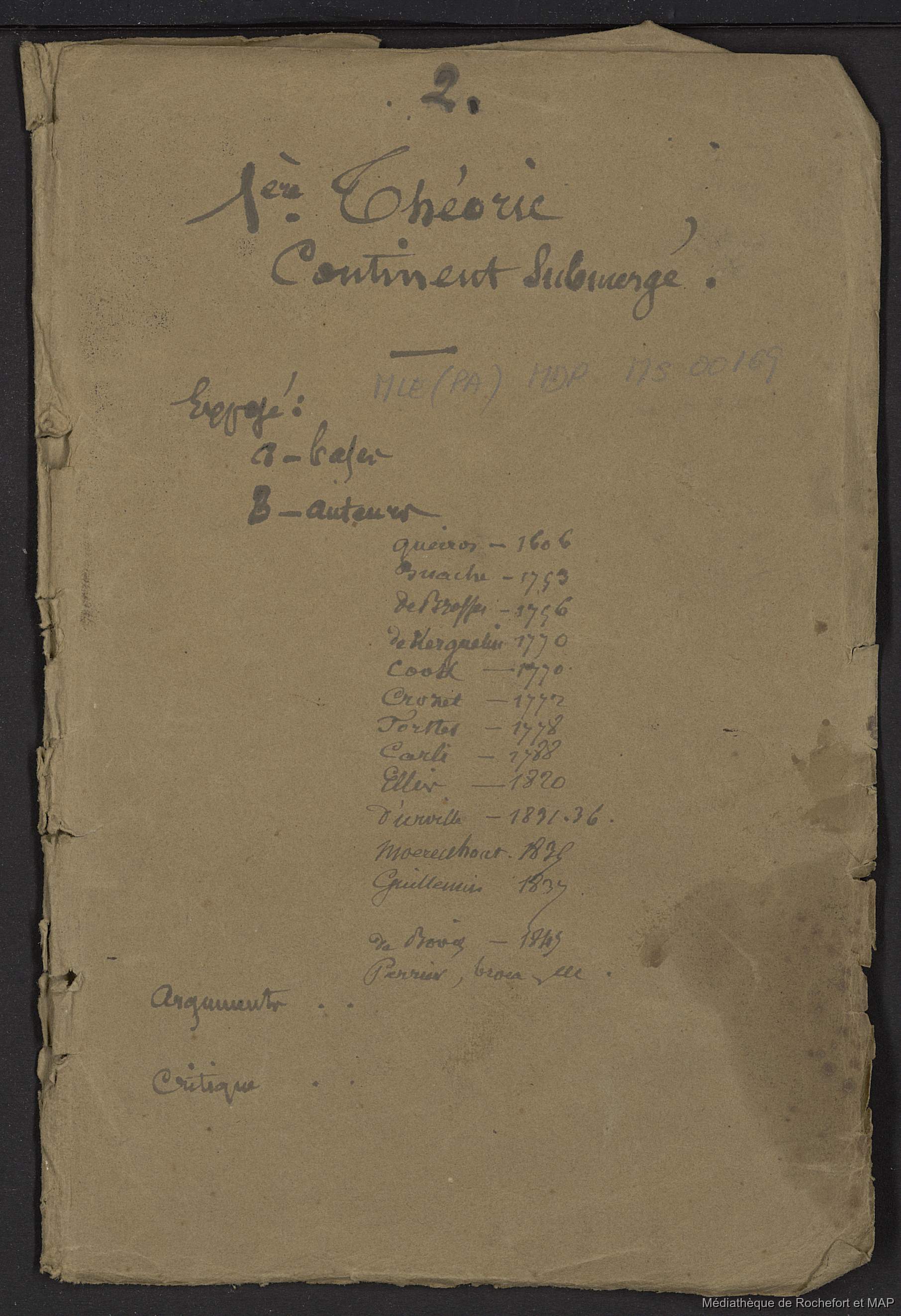 Title/DescriptionThéorie des migrations. 1ère théorie : provenance d'un continent en partie submergé (B172996201_Ms00169)