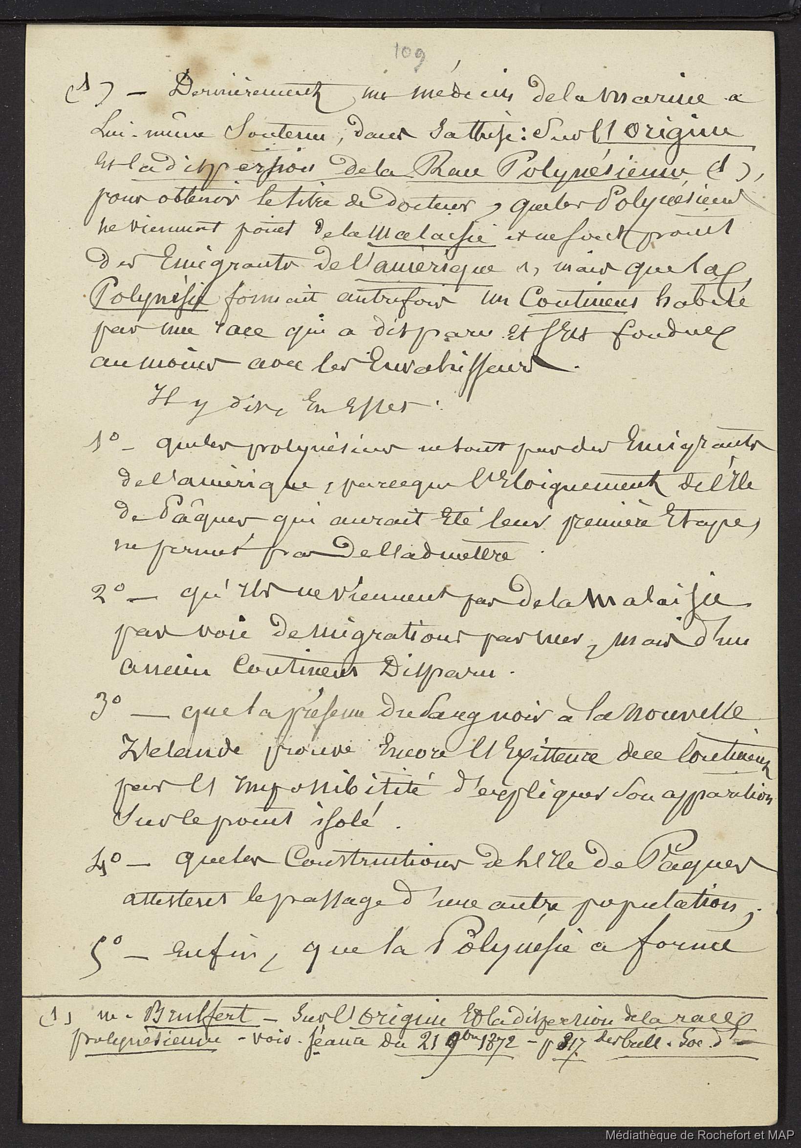 Lesson, Pierre-Adolphe [accessed: 2025/12/8]. "Théorie des migrations. 1ère théorie : provenance d'un continent en partie submergé (B172996201_Ms00169)" (Object Id: 164524). In