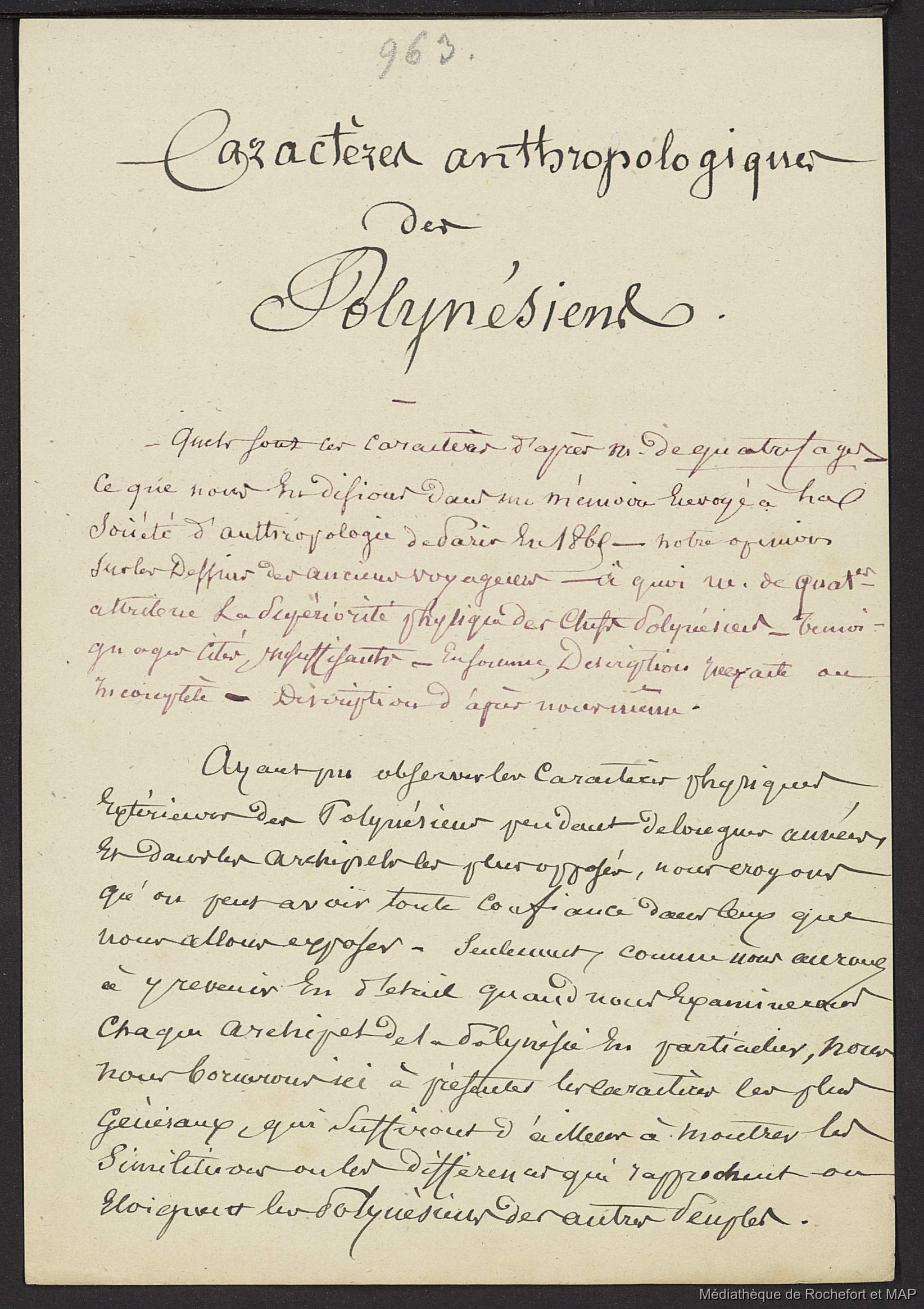 Lesson, Pierre-Adolphe [accessed: 2025/12/8]. "Théorie des migrations. Caractères anthropologiques des Polynésiens. (B172996201_Ms00176)" (Object Id: 165244). In